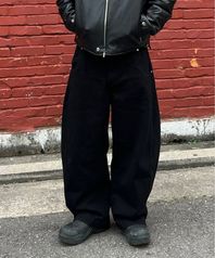 TX304 커브드 배기 벌룬 데님 (블랙)