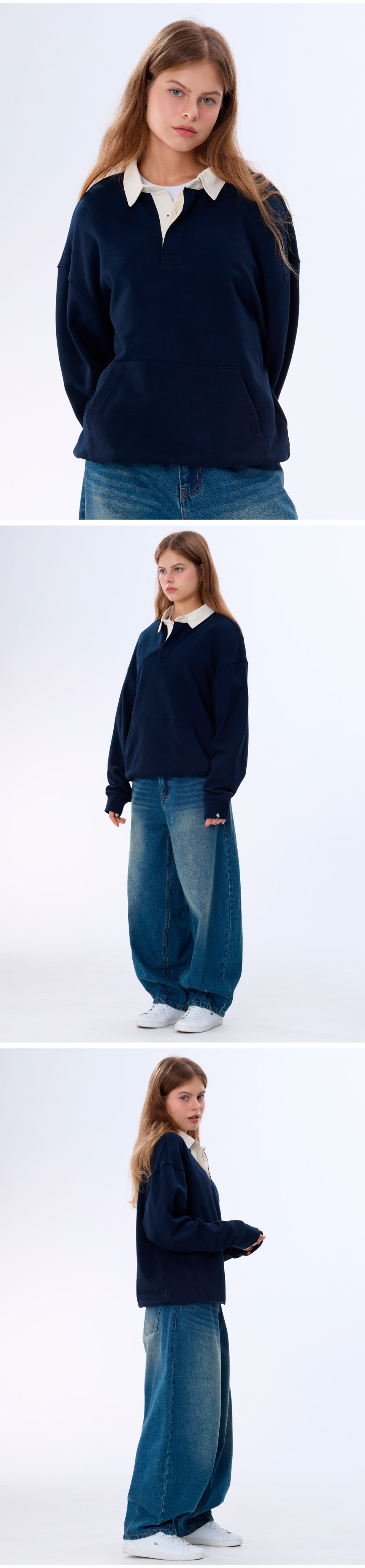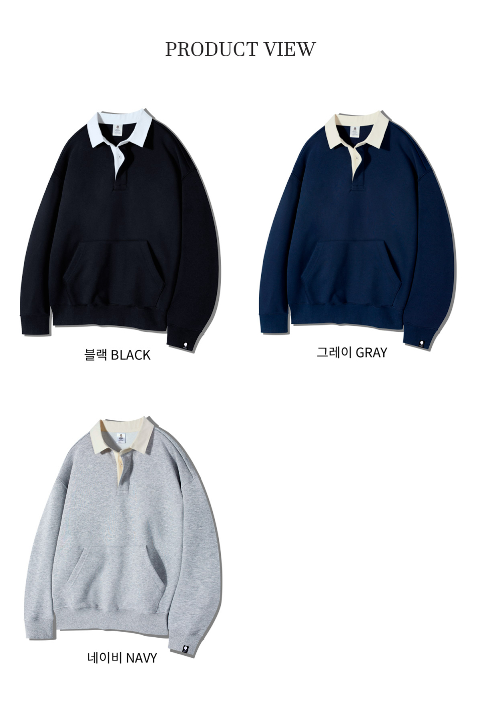 베이직 럭비 카라 맨투맨 GMT-162_네이비