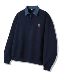 레더 패치 데님 카라 럭비 맨투맨_네이비