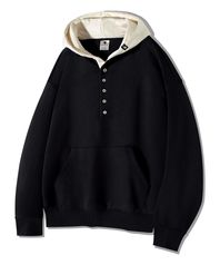베이직 후드배색 헨리넥 후드티 GHT-485_블랙
