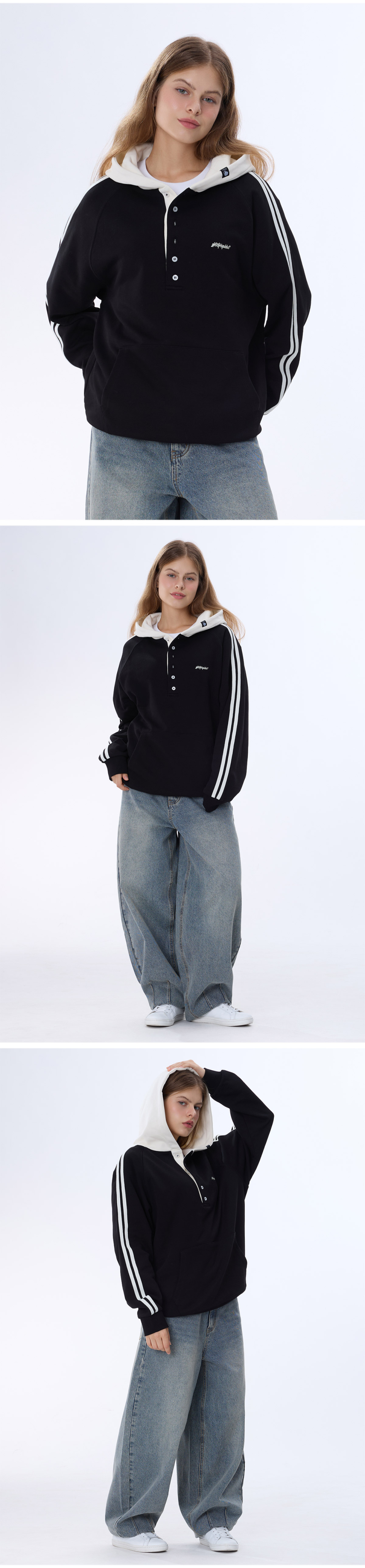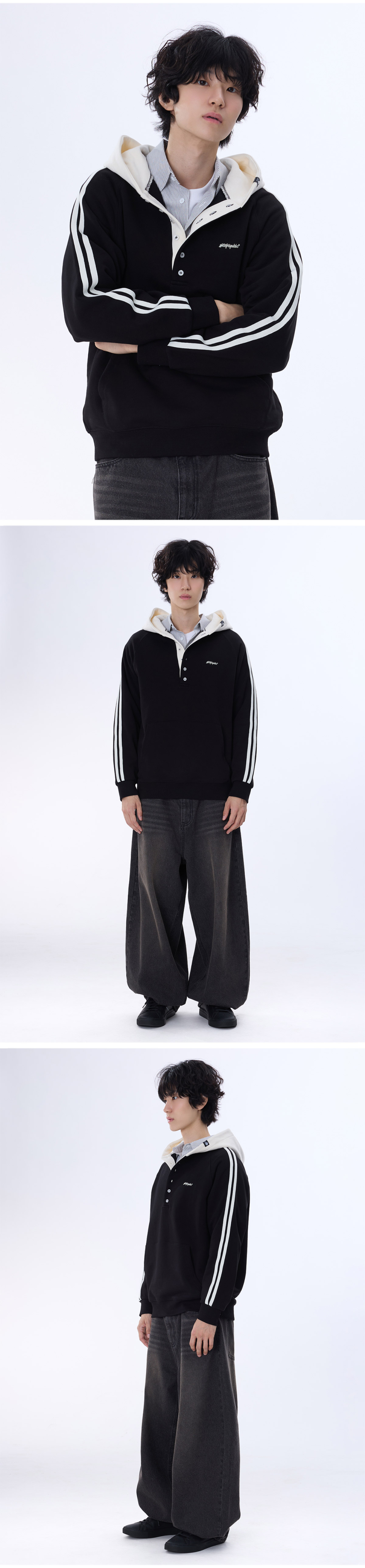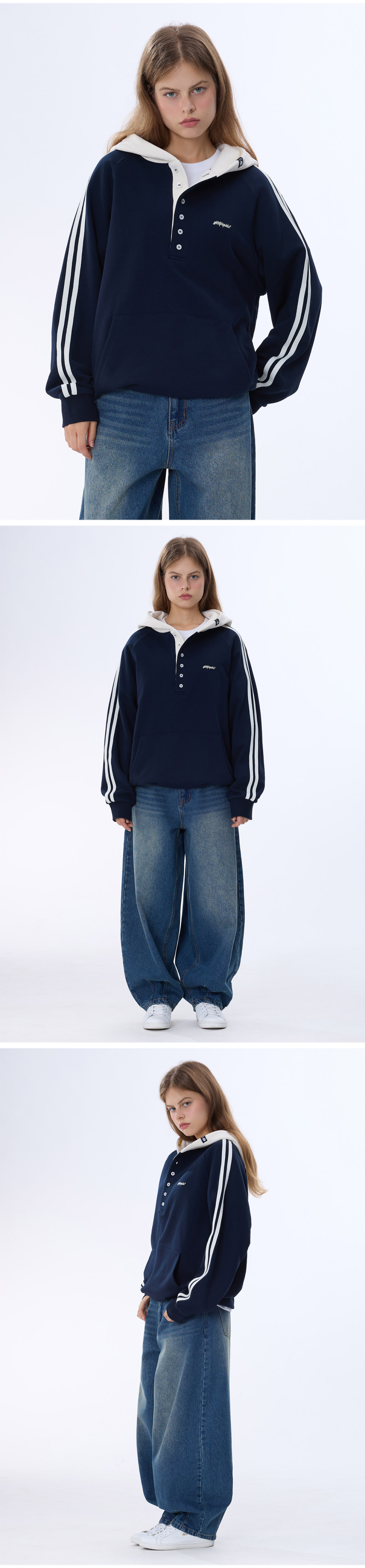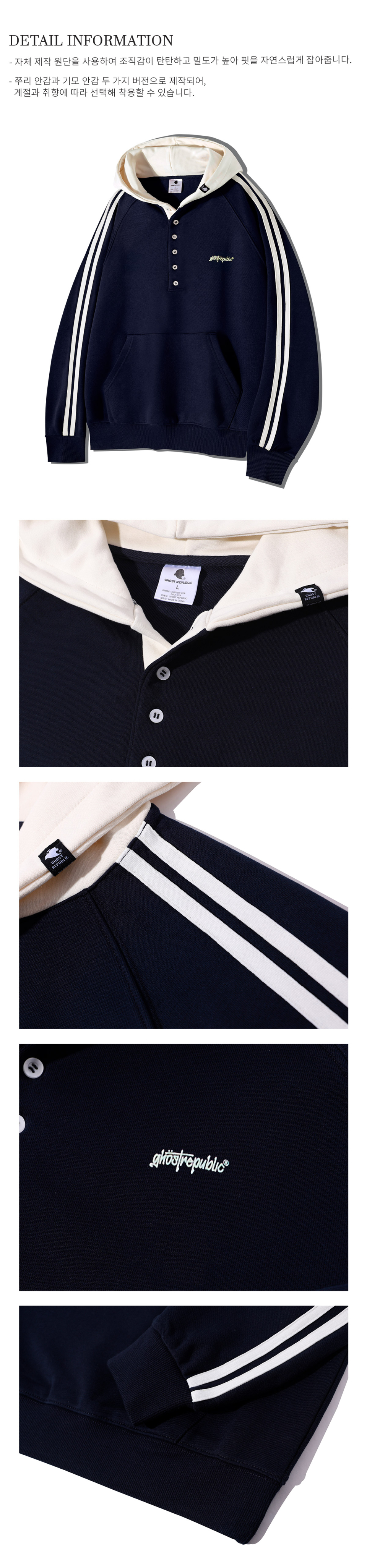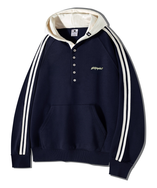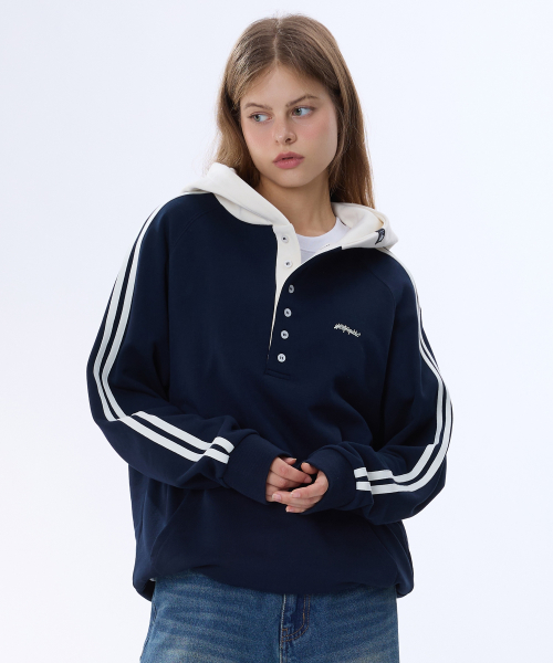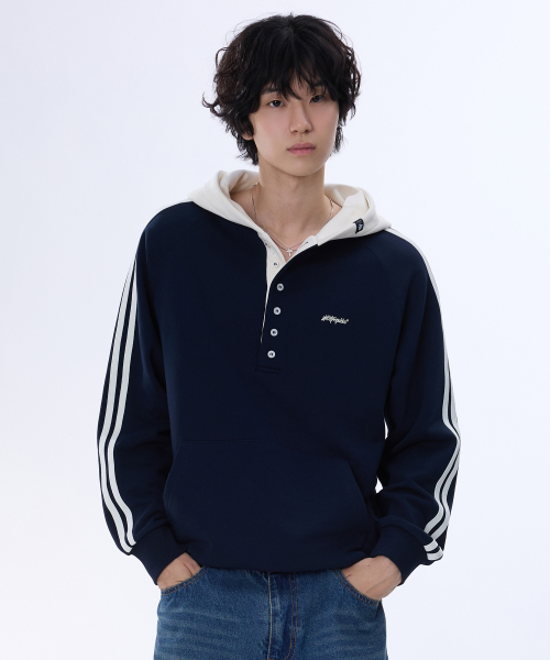 래글런 트랙 후드배색 헨리넥 후드티 GHT-483_네이비