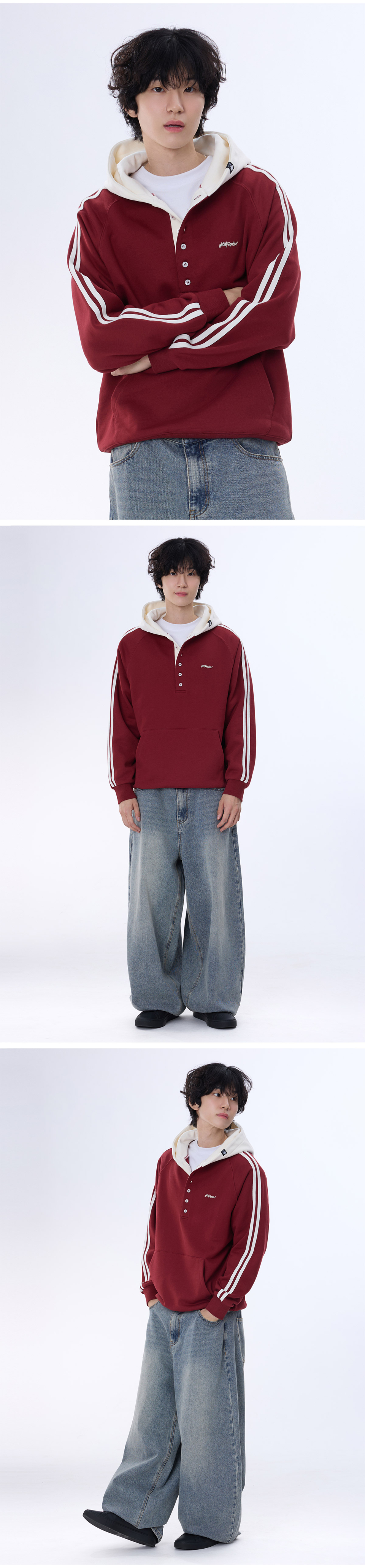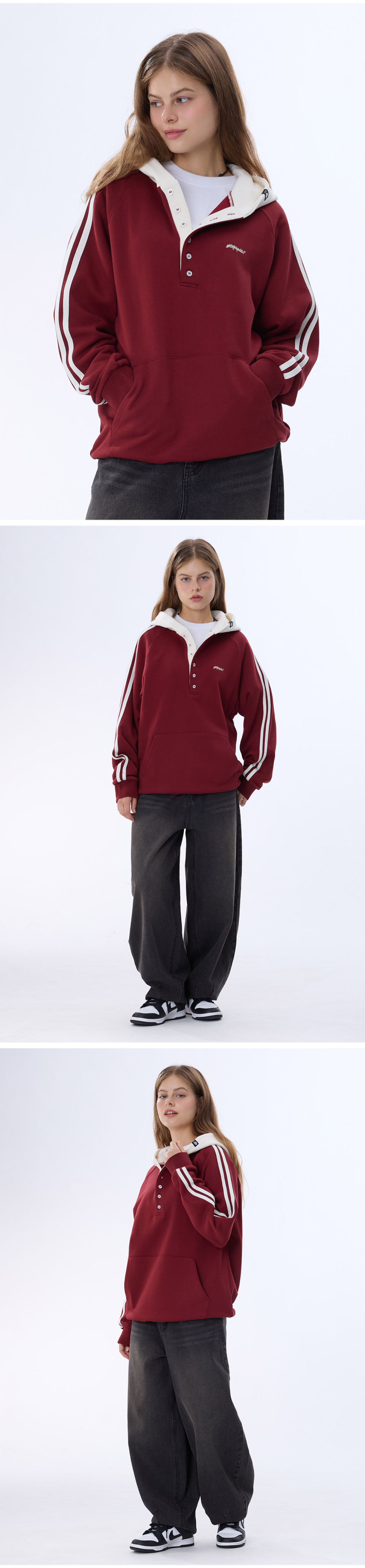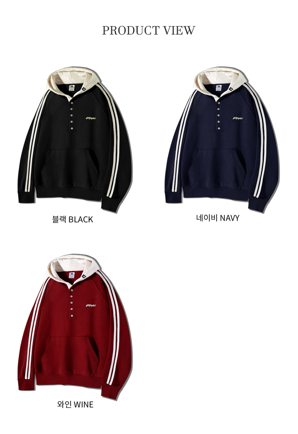 래글런 트랙 후드배색 헨리넥 후드티 GHT-483_와인