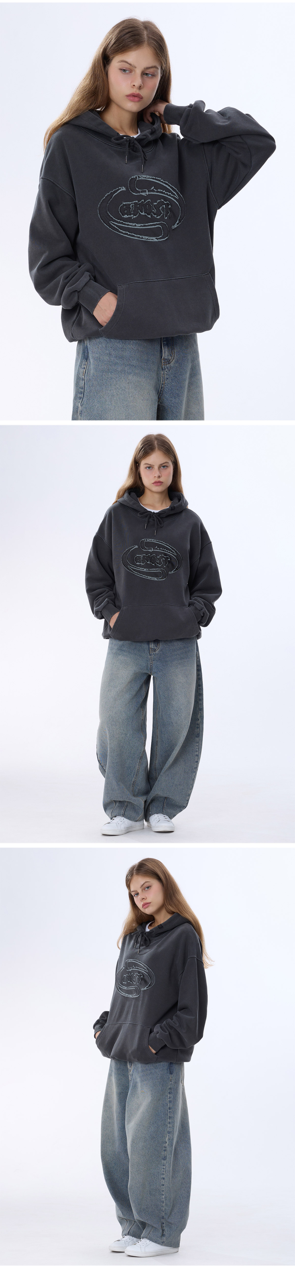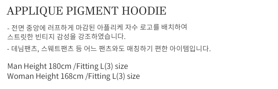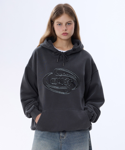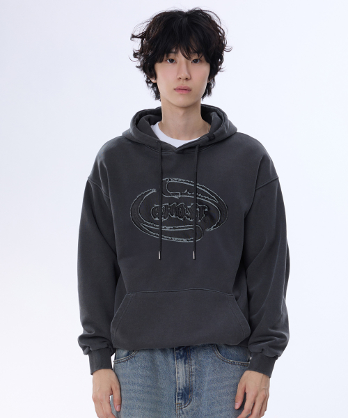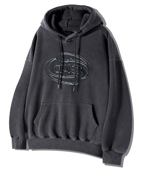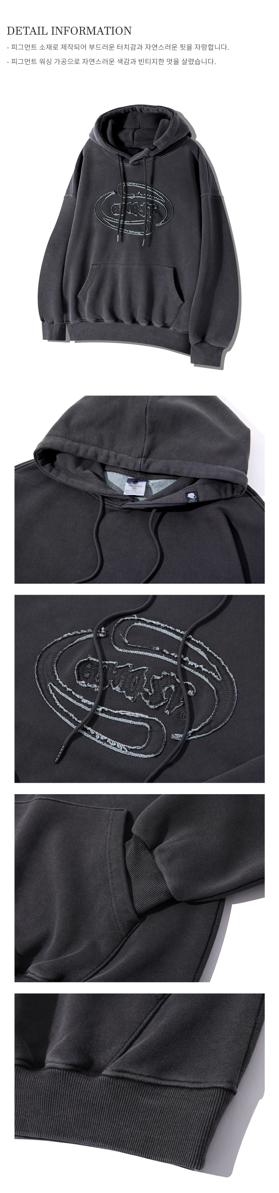 워시드 아플리케 피그먼트 후드티 GHT-484_스모크블랙