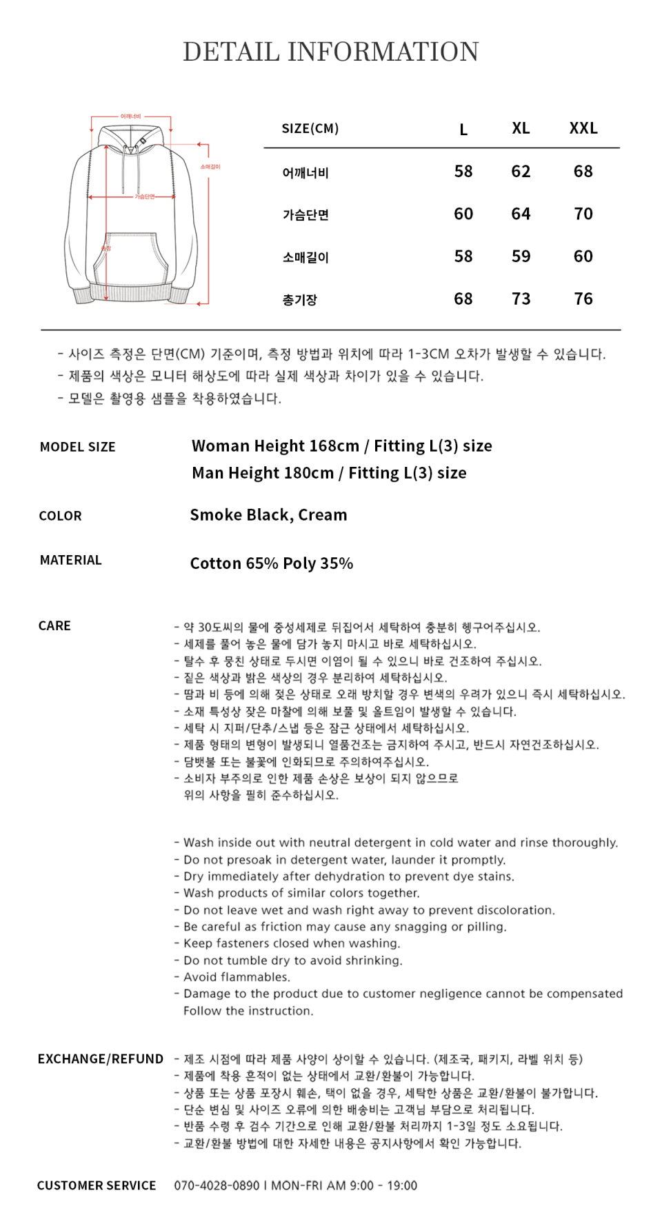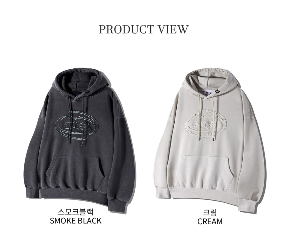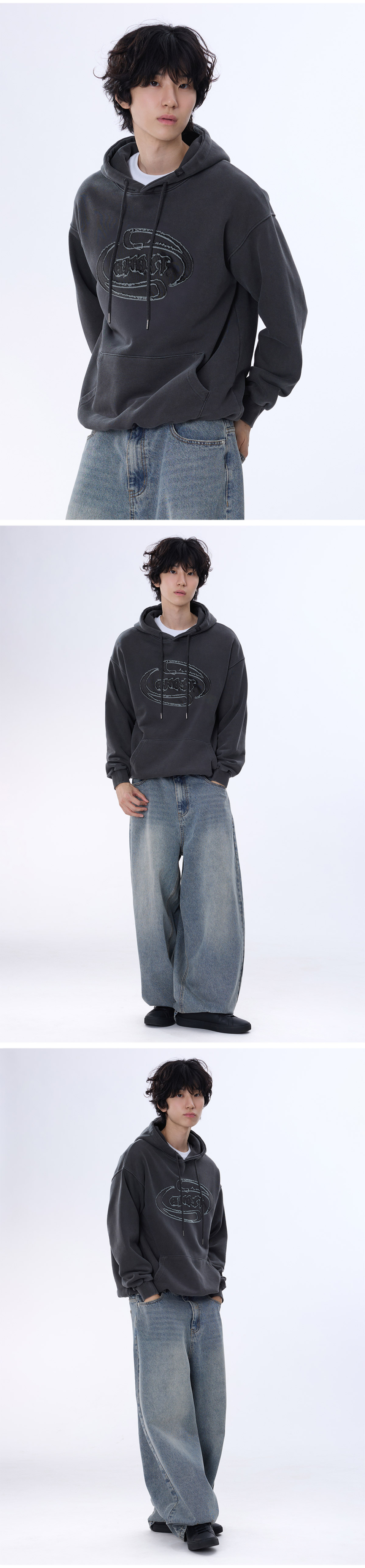 워시드 아플리케 피그먼트 후드티 GHT-484_스모크블랙
