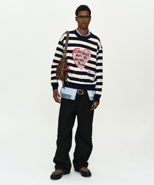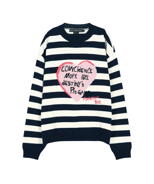 BOYS HEART MESSAGE CREW-NECK SWEATER atb1453m(NAVY/IVORY)