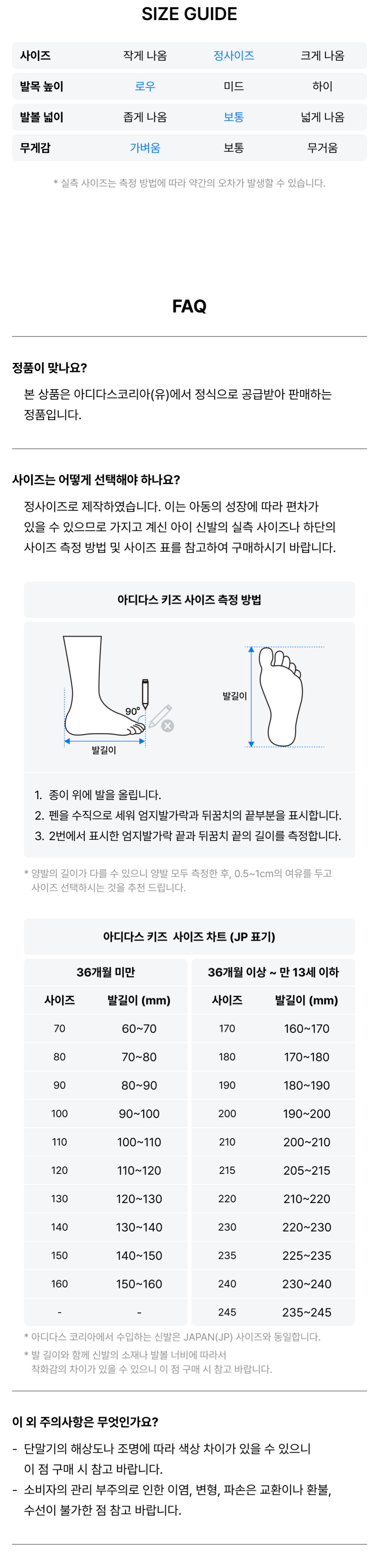 아디다스 키즈(ADIDAS KIDS)는 스포츠 브랜드 '아디다스'의 키즈 라인으로, 아이들도 스포츠와 스타일을 마음껏 즐기고 표현할 수 있다는 생각으로 탄생한 브랜드입니다. 놀이터에서 경기장까지 아이들의 에너지에 맞춰 자유롭게 움직일 수 있는 스포츠 의류와 신발을 선보입니다. 첫 걸음부터 곧 성인이 되는 성장의 순간을 함께합니다.