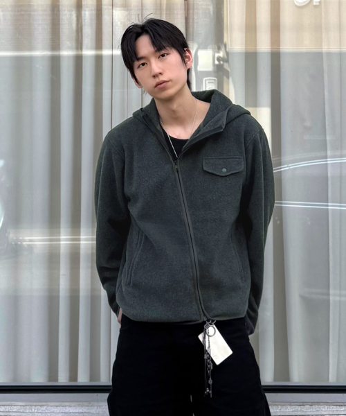 CROPPED WASHED HOOD ZIP UP [DEEP GREEN]
