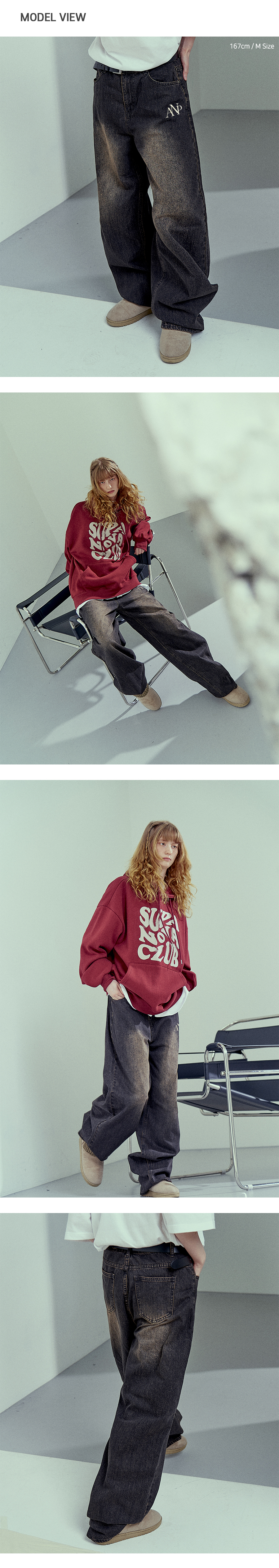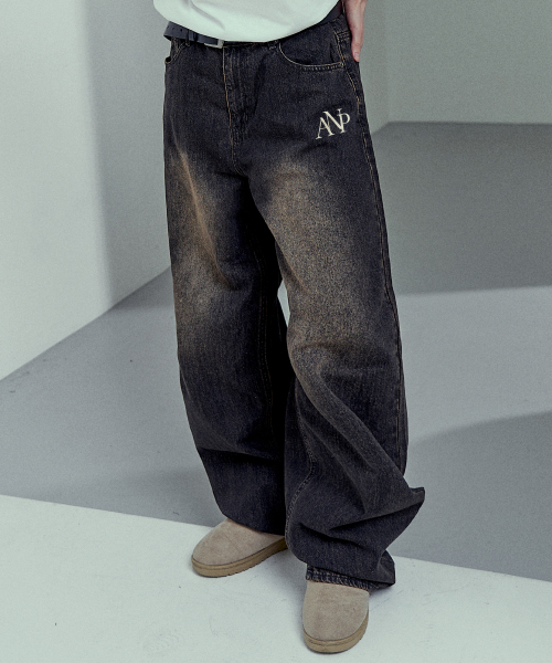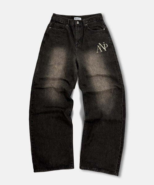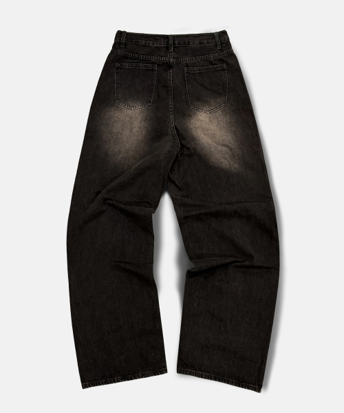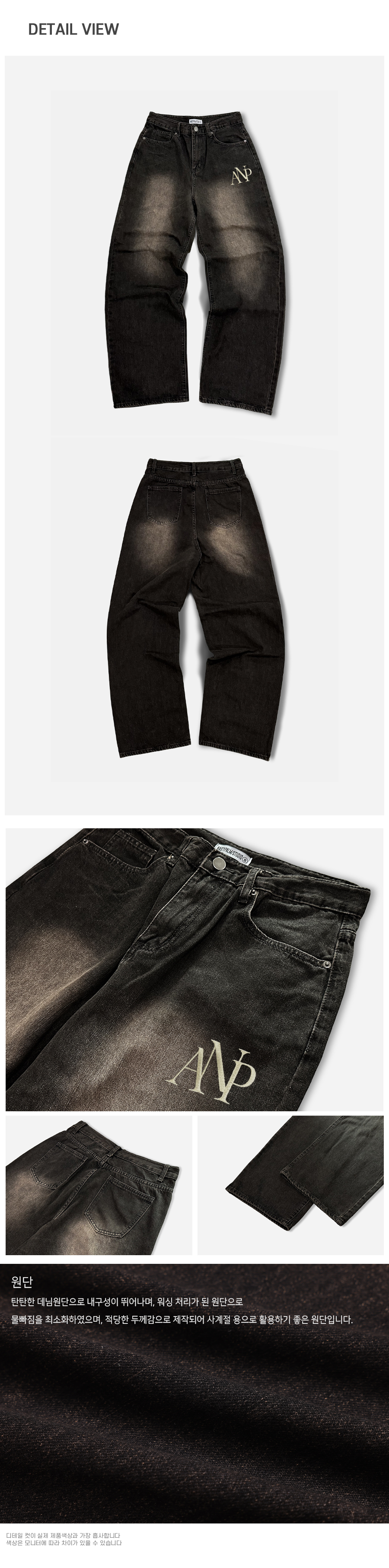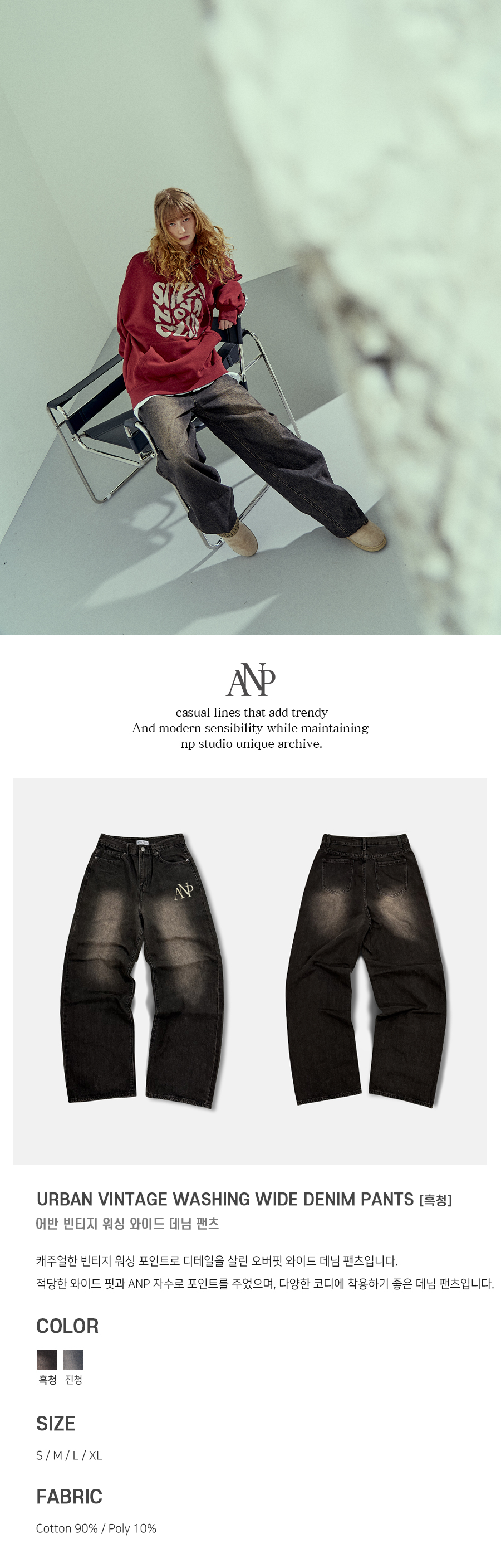 어반 빈티지 워싱 와이드 데님 팬츠 흑청