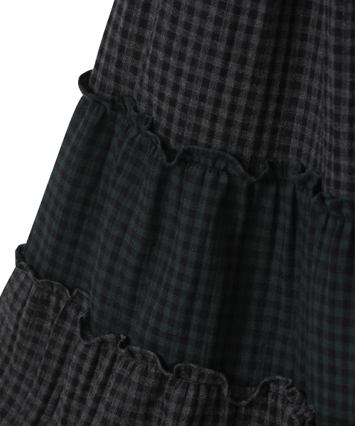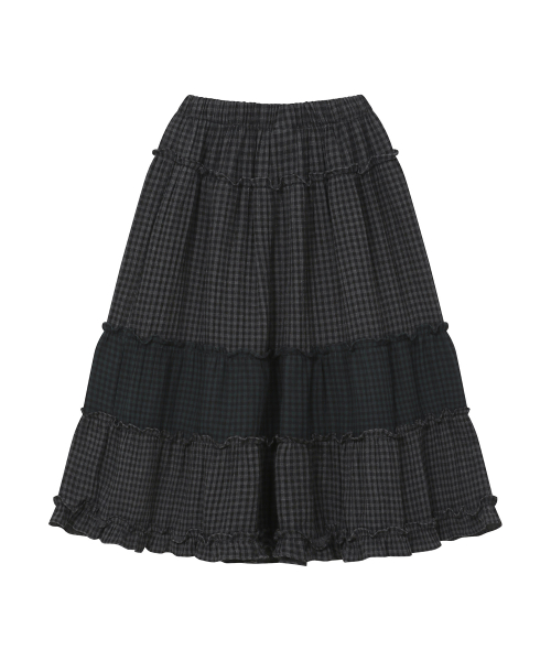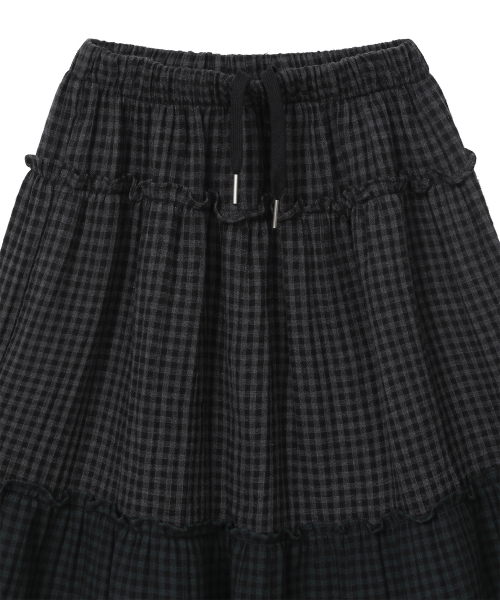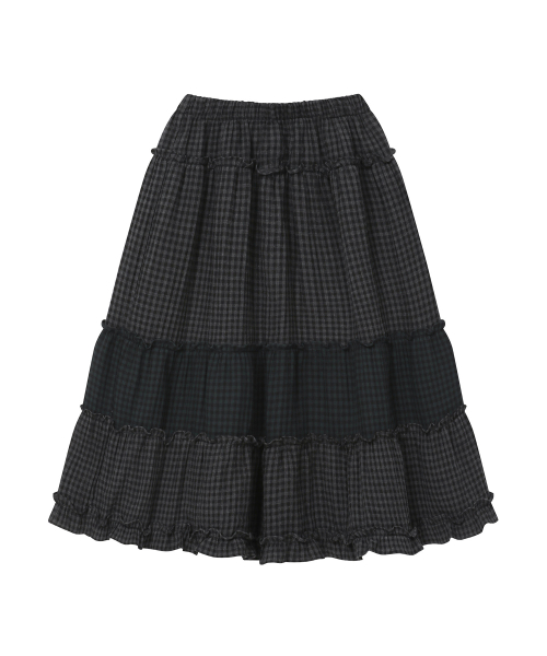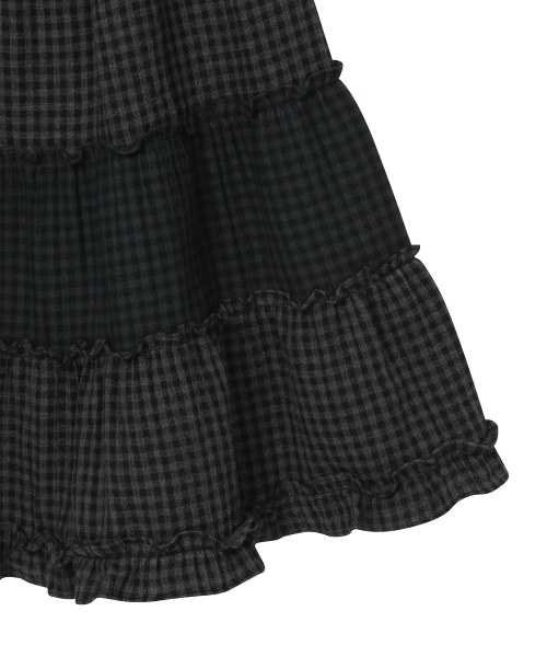 빈티지 프릴 스커트 [체크 블랙]