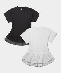 로고 포인트 투레이어 도트 프릴 오버핏 반팔 티셔츠 _ 2COLOR