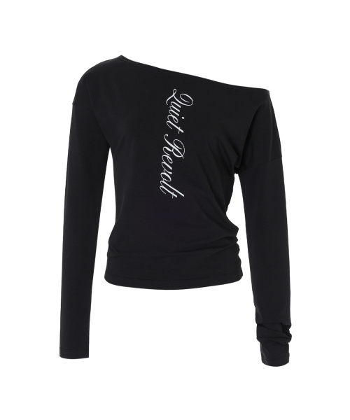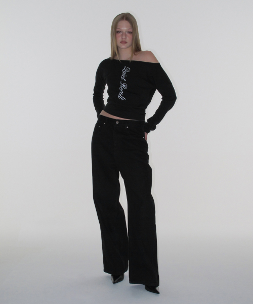 레터링 오프숄더 탑_블랙