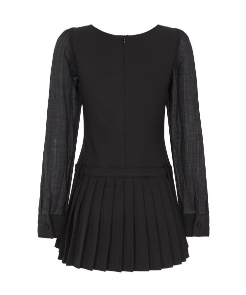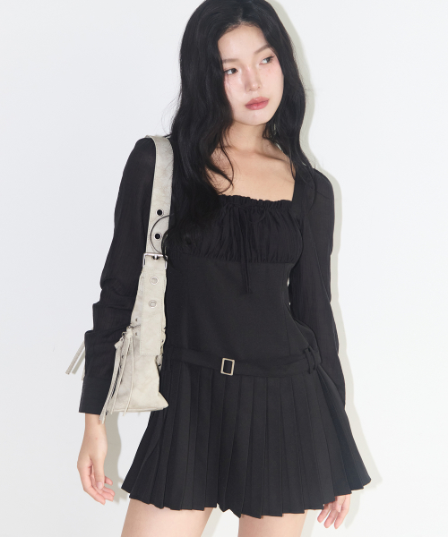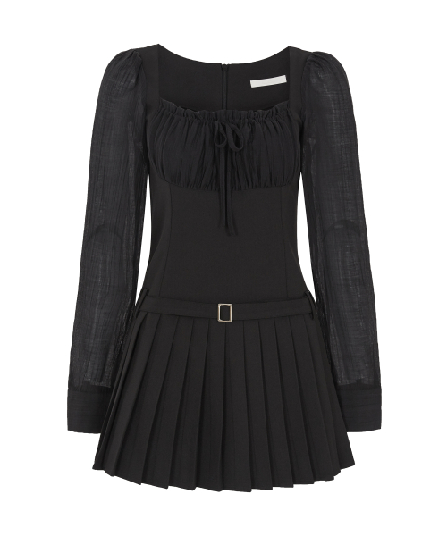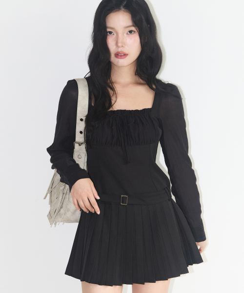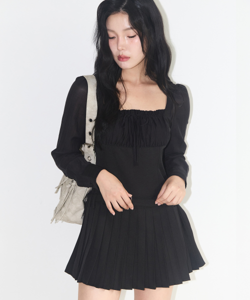 프레피 리본 플리츠 원피스 블랙