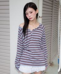 Stripe Button Long Sleeve [Blue]