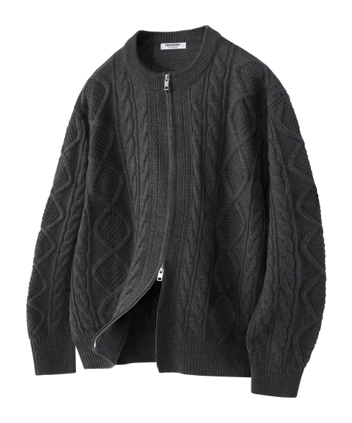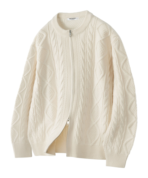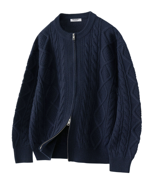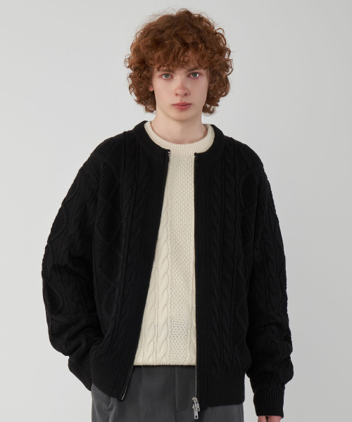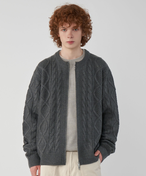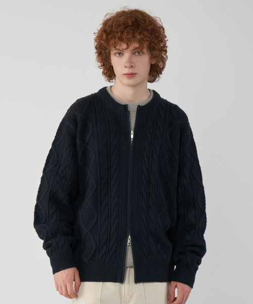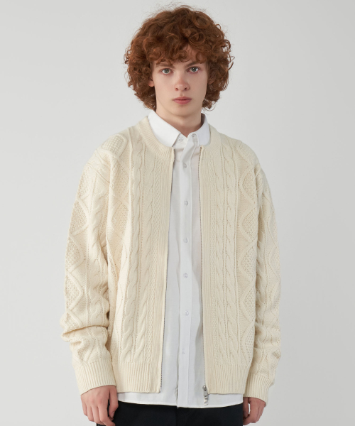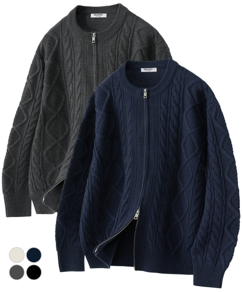오버핏 2WAY 아란 케이블 라운드 집업 니트 가디건 5Color