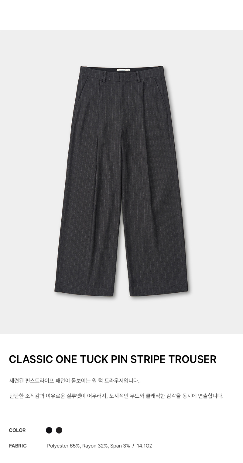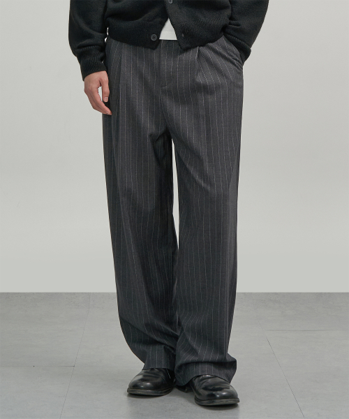 클래식 원턱 핀 스트라이프 트라우저 (CHARCOAL)