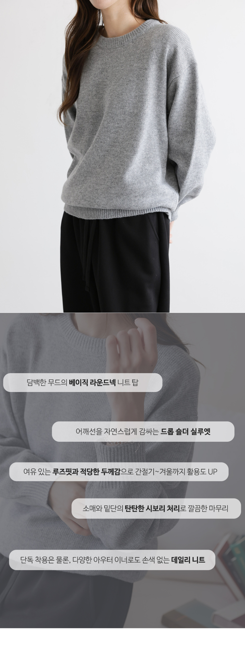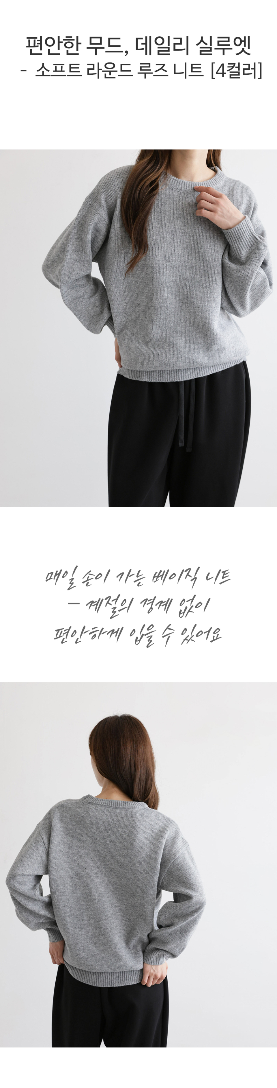 라운드넥 소프트 루즈핏 니트 티셔츠 4COLOR