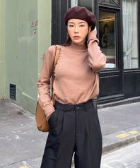 반목 터틀넥 폴라 니트 티셔츠