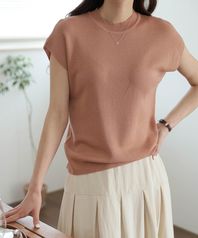 라운드넥 캡소매 니트 티셔츠