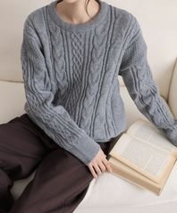 라운드넥 볼륨 꽈배기 루즈핏 긴팔 니트 티셔츠 4COLOR