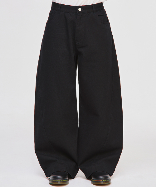 트위스트 커브드 코튼 팬츠[블랙]