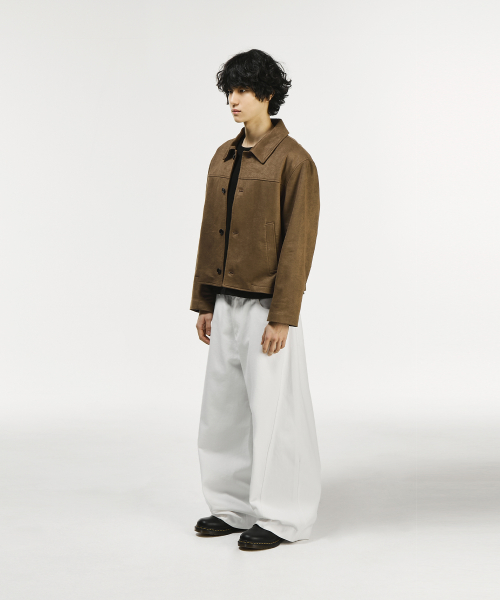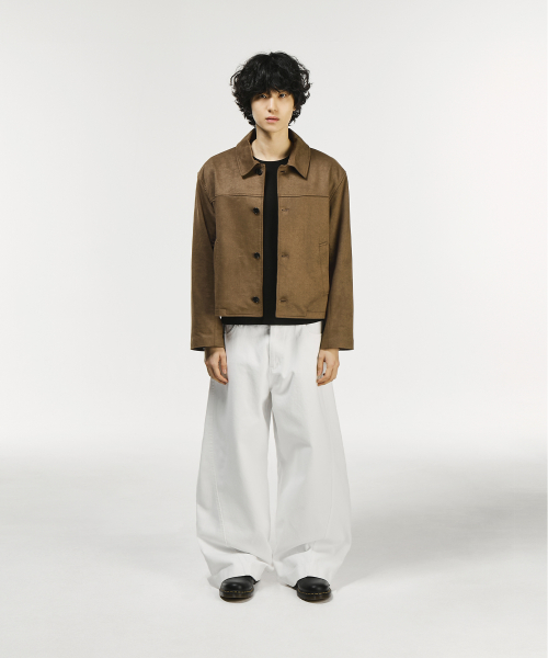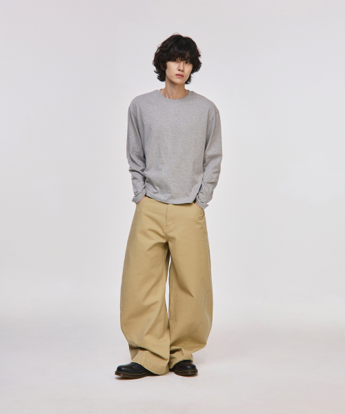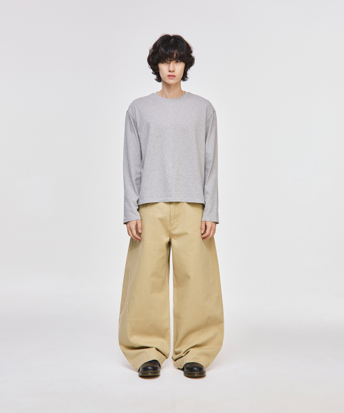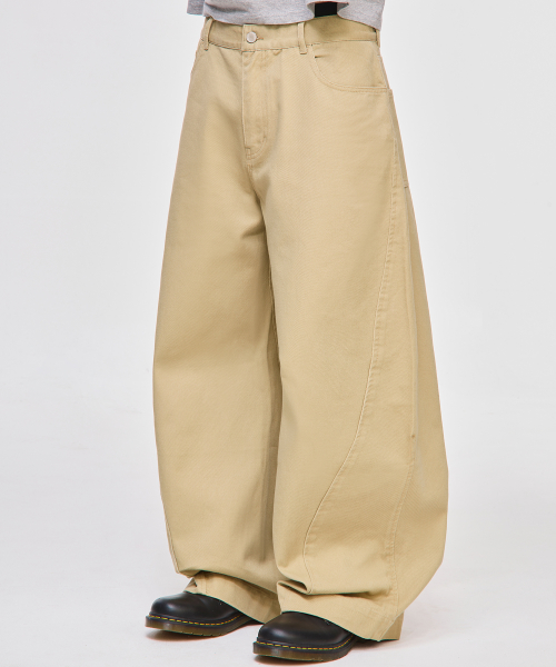 와이드 커브드 다트 코튼 팬츠[베이지]