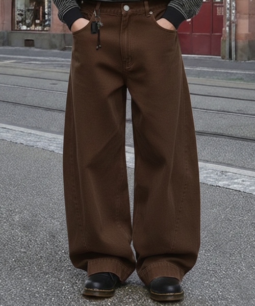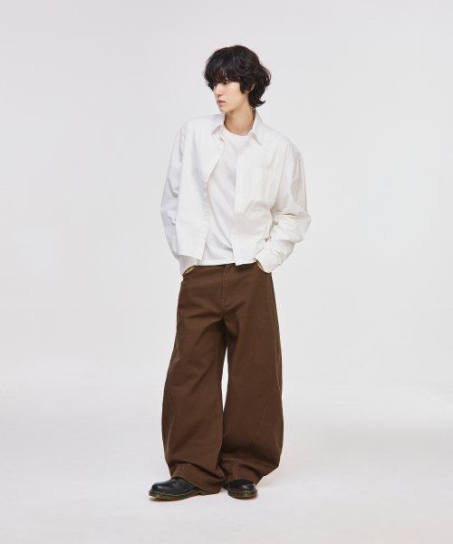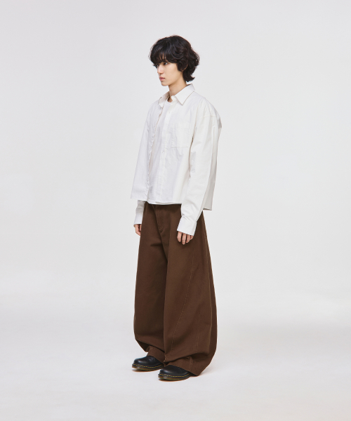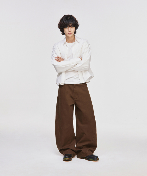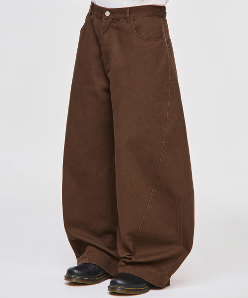 트위스트 커브드 코튼 팬츠[브라운]