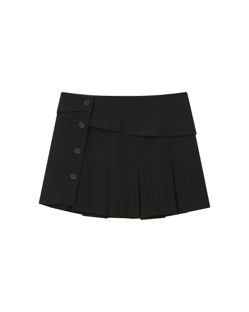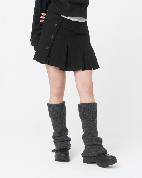 더블 스트랩 플리츠 미니 스커트 [CHARCOAL]