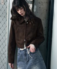 커브드 스웨이드 크롭 집업 자켓 [DARK BROWN]