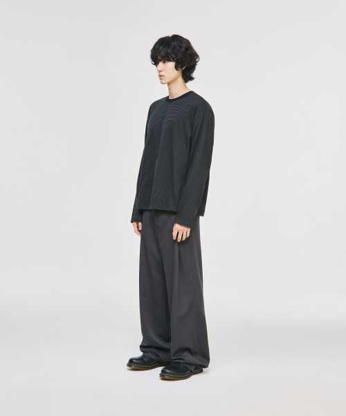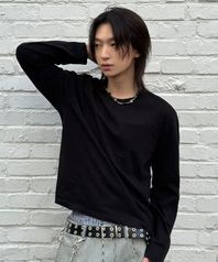 크롭 와플 헨리넥 긴팔 티셔츠[2COLORS]