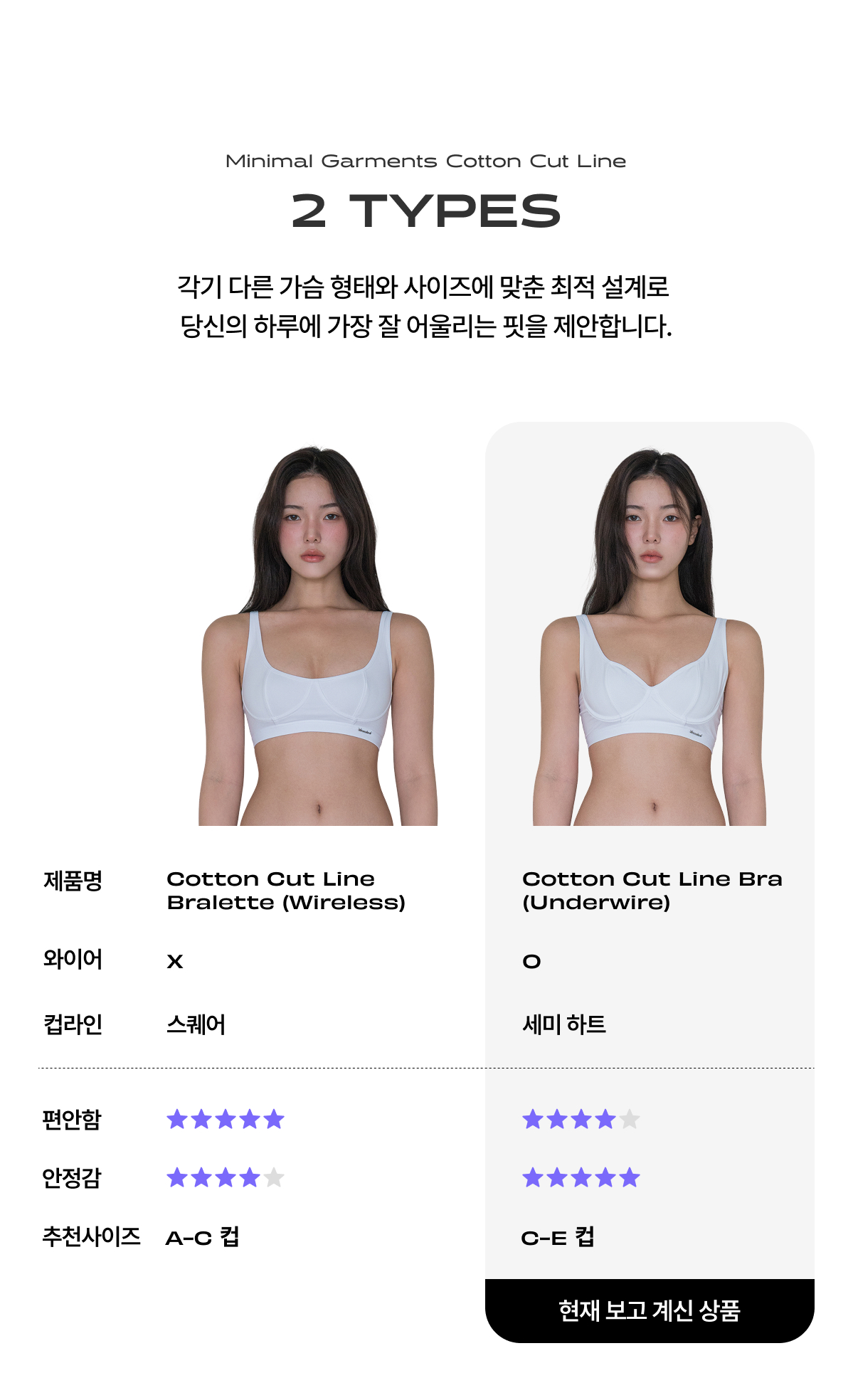 Minimal Garments Cotton Cut Line Bra (Underwire)_2colors