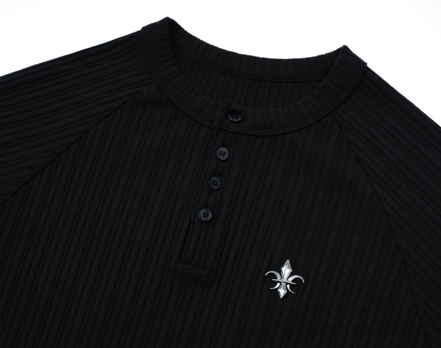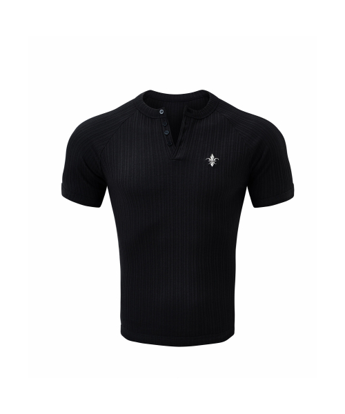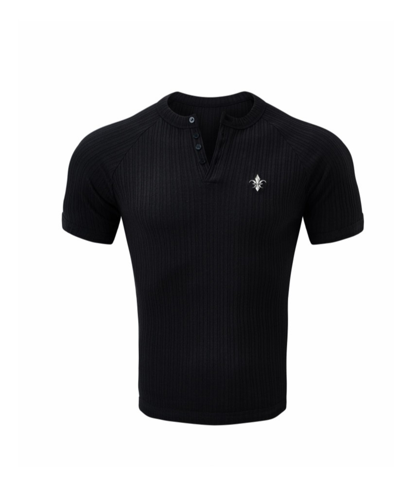 헨리넥 머슬핏 골지 니트 반팔 티셔츠