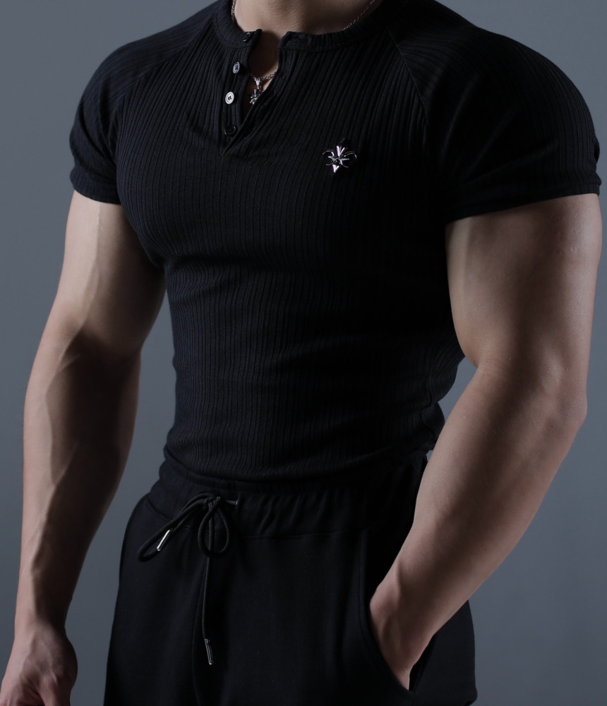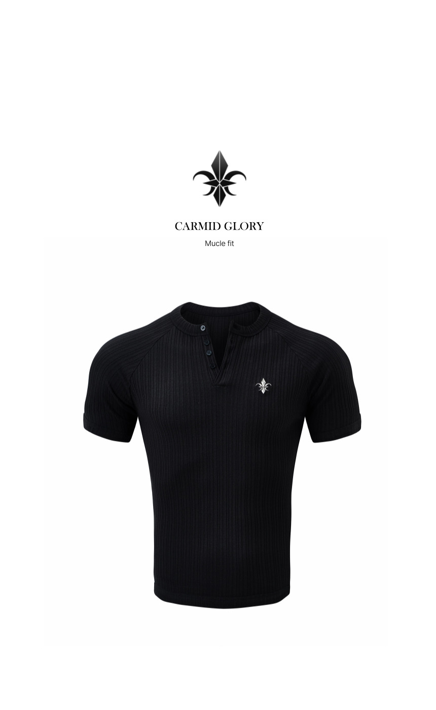 카미드 글로리 헨리넥 머슬핏 골지 반팔티셔츠 [그레이]