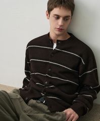 울 헤어리 브로드 스트라이프 가디건 [BROWN]
