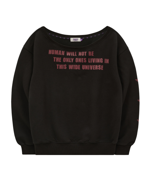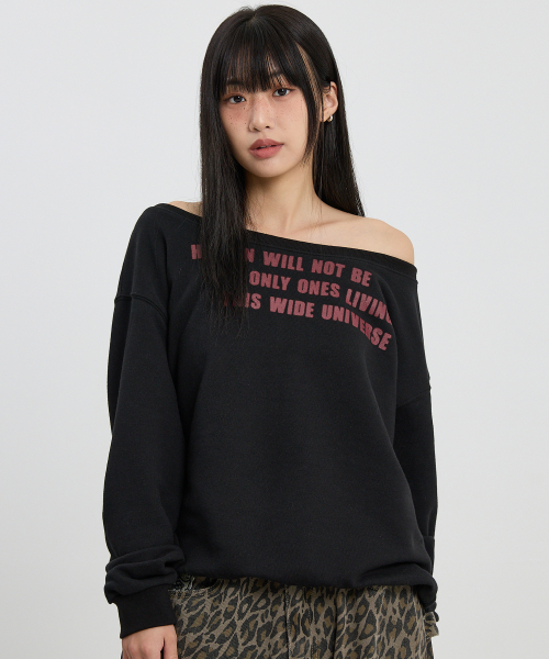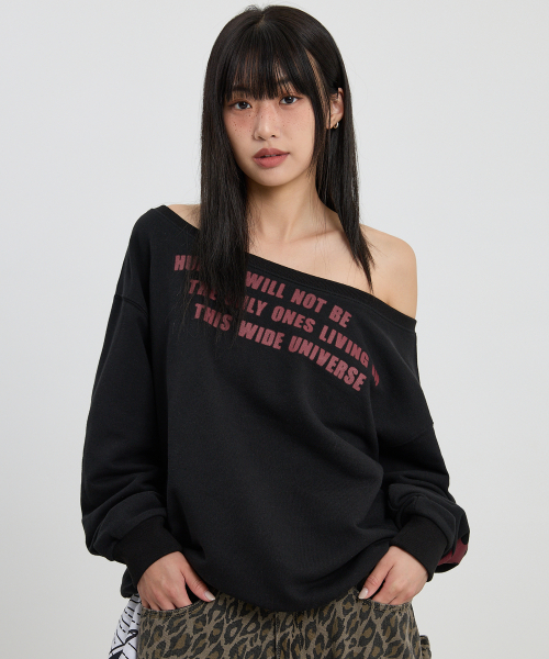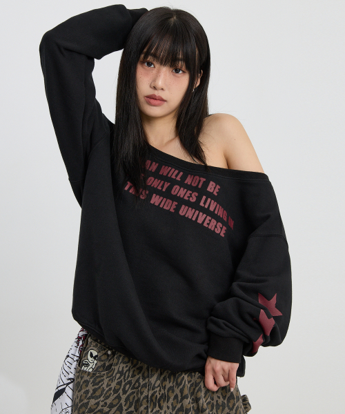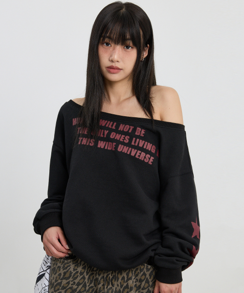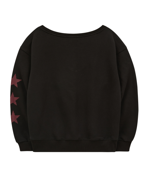 Three Star 레터링 오프숄더 맨투맨 블랙