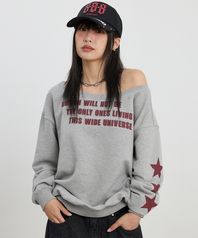 Three Star 레터링 오프숄더 맨투맨 그레이