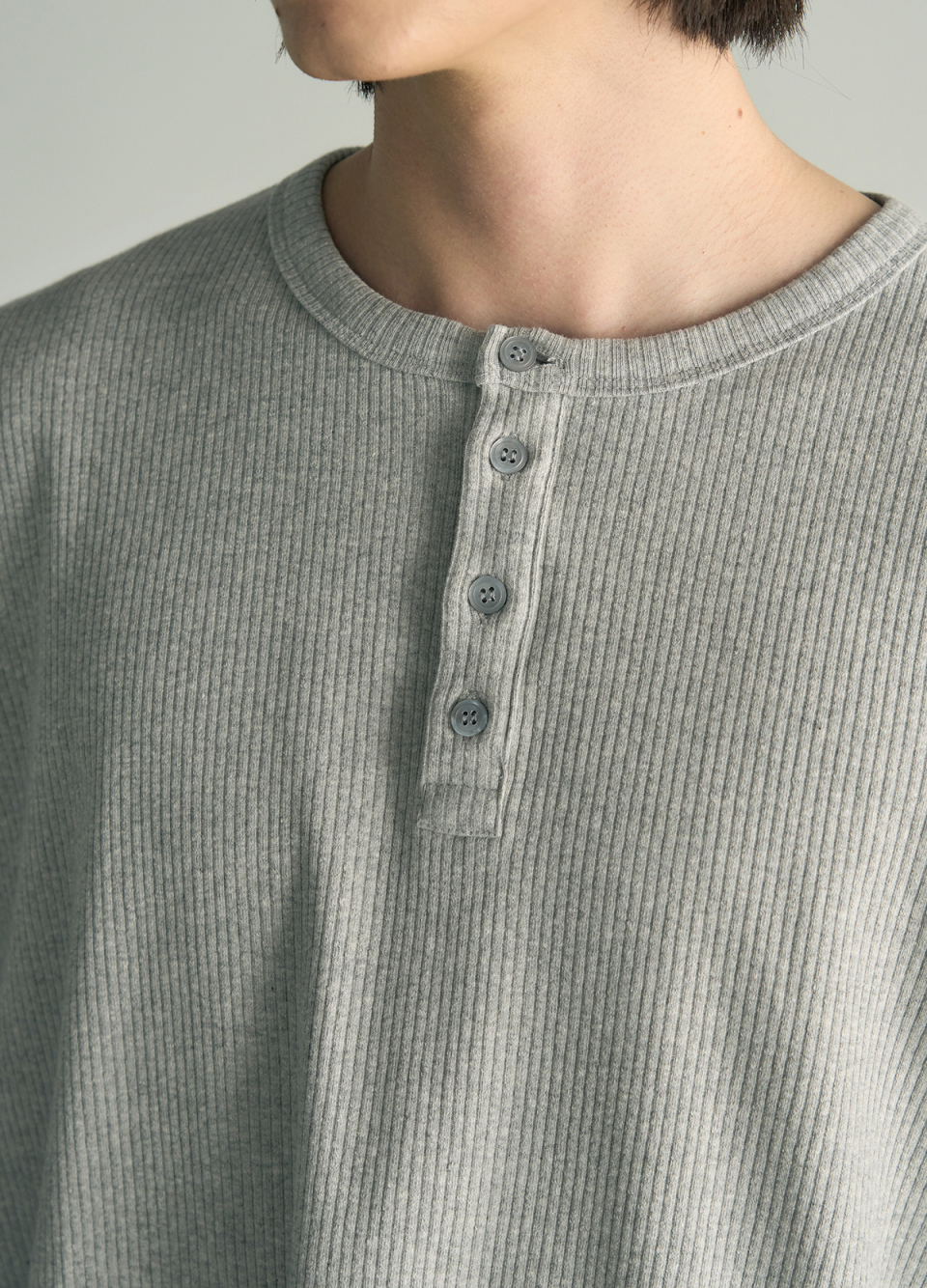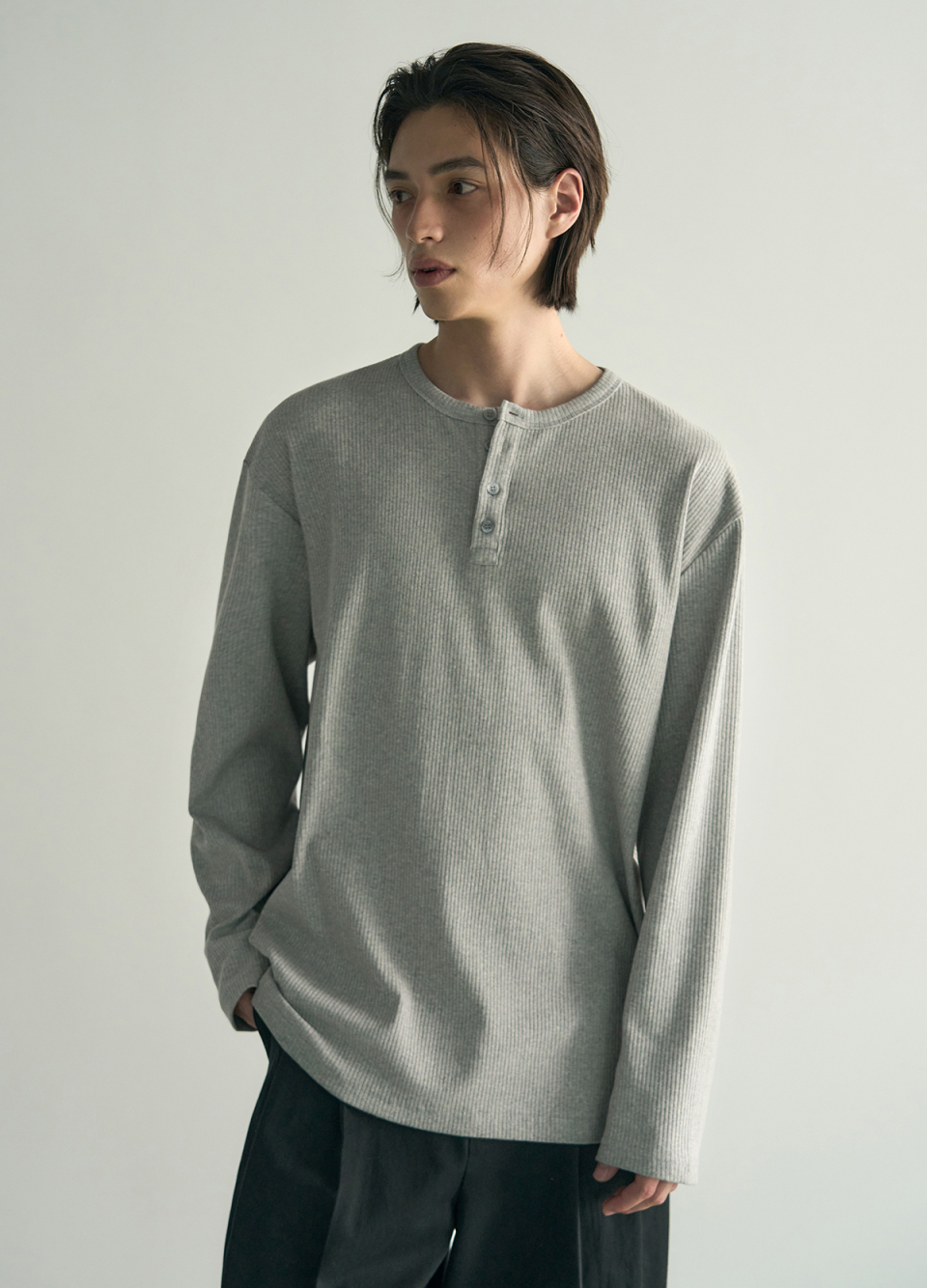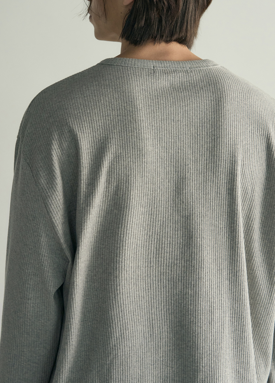 리브드 헨리넥 니트 티셔츠 [그레이]