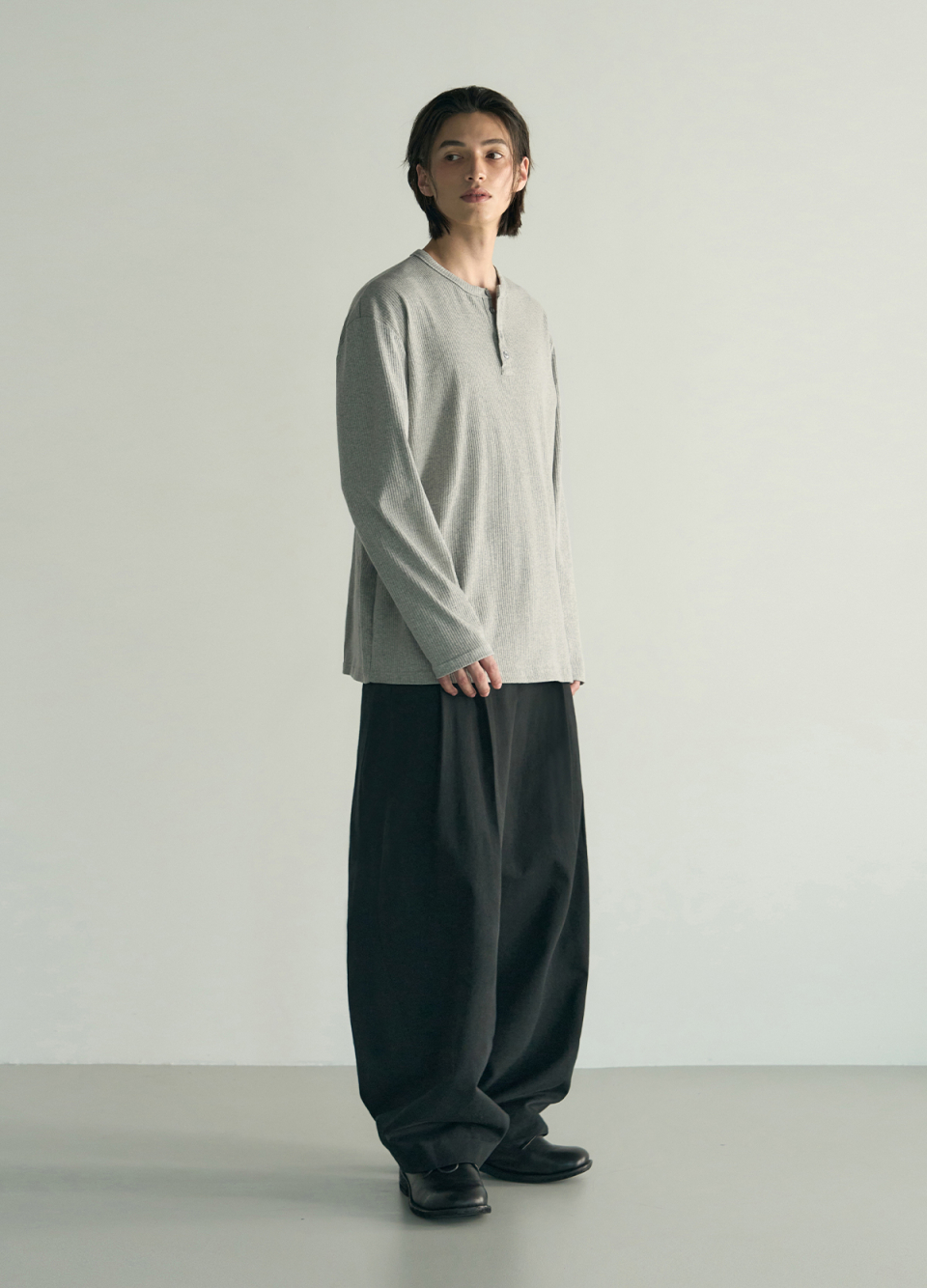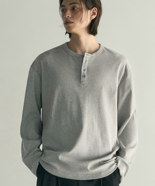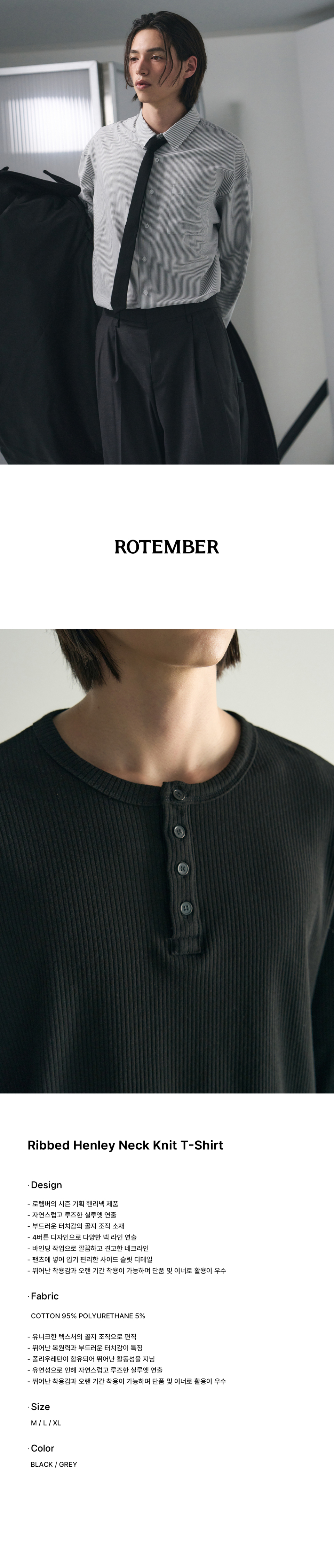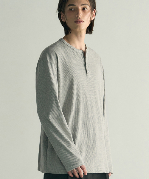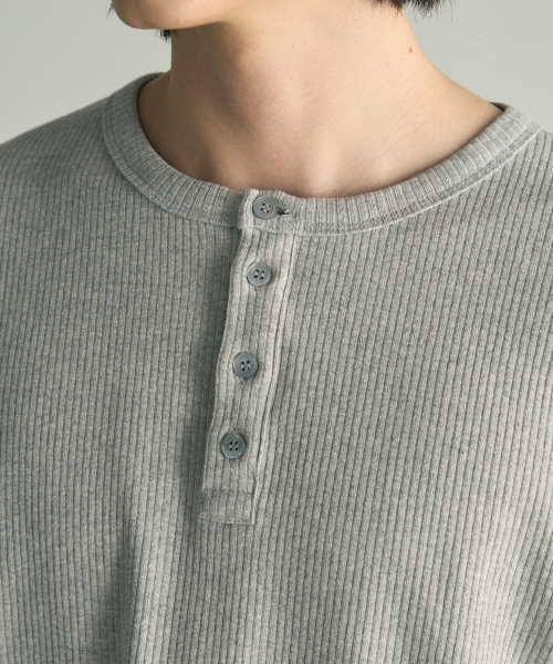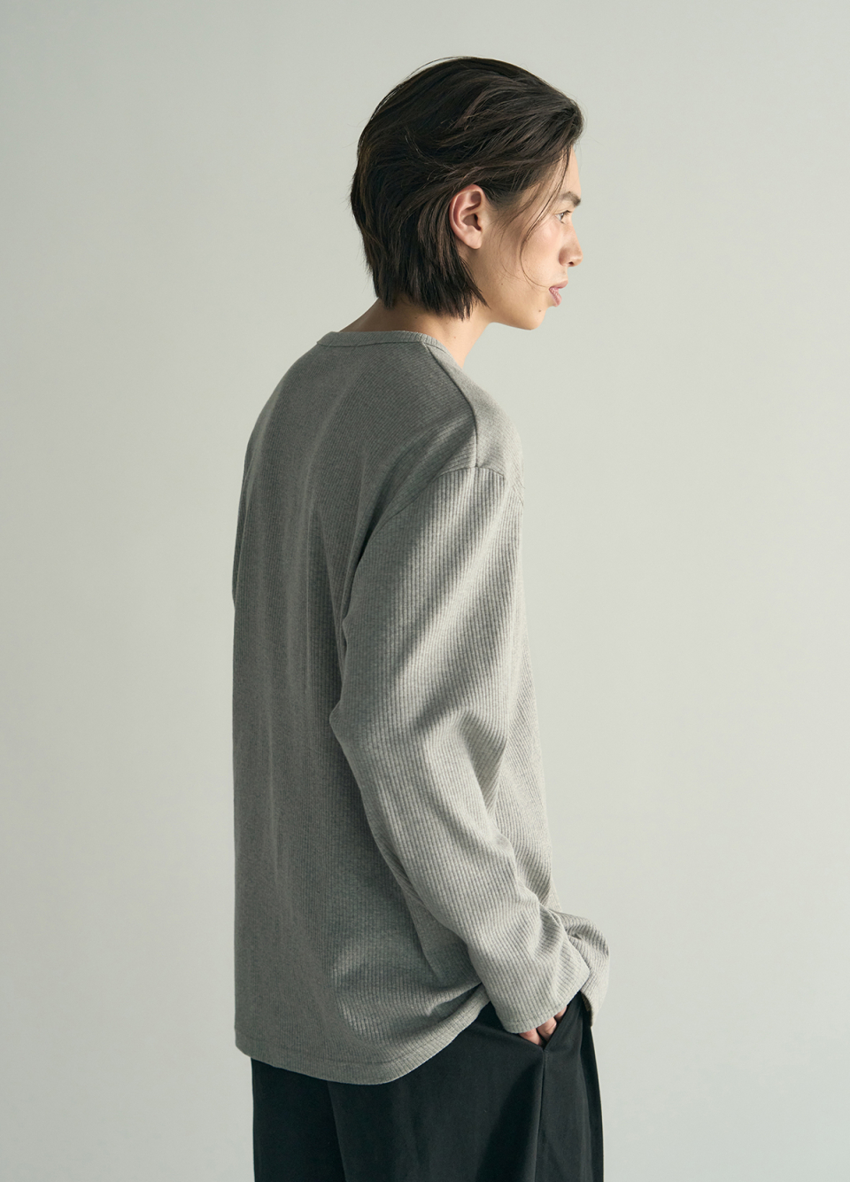 리브드 헨리넥 니트 티셔츠 [그레이]