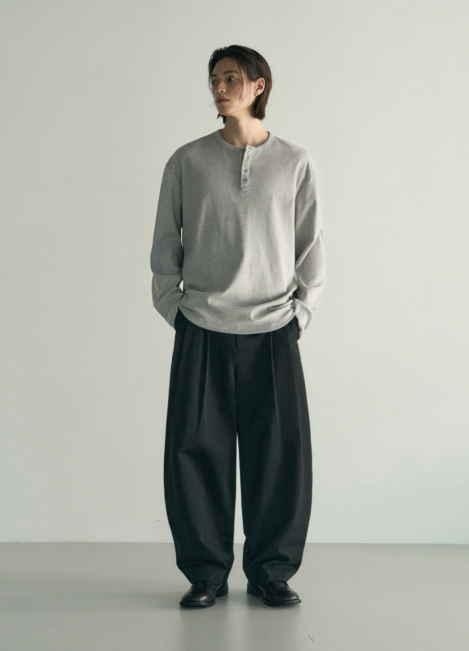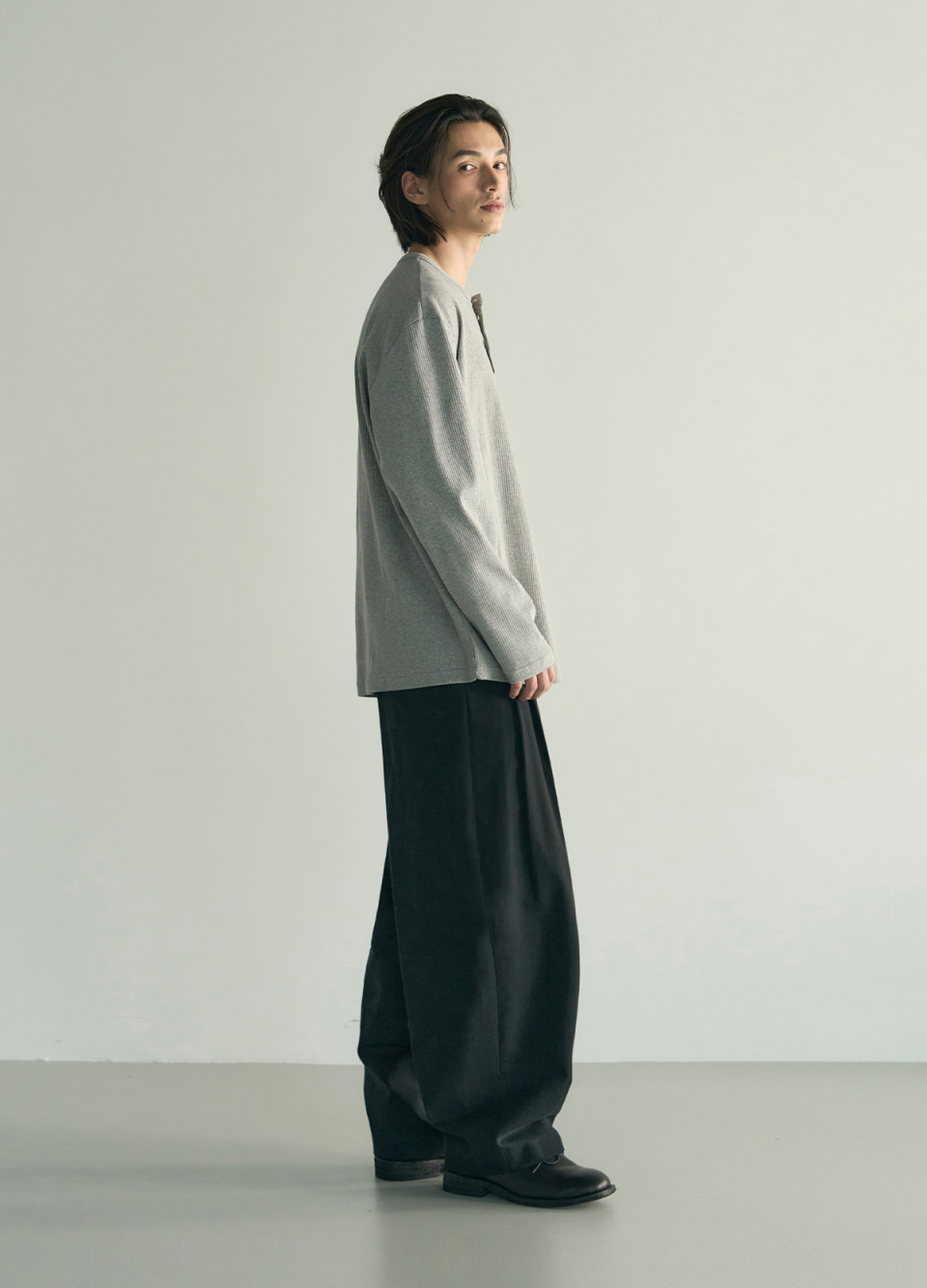 레스티드 세미 오버핏 헨리넥 니트 [차콜]