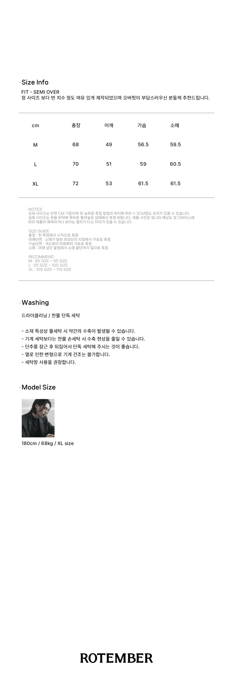 로템버(ROTEMBER)는 미니멀리즘을 기반으로 실루엣과 소재에 집중하며 불필요한 메시지를 덜어내고 절제된 디테일과 선의 흐름으로 일상에 자연스럽게 정리되는 균형과 선명한 존재감을 제안하는 브랜드입니다.