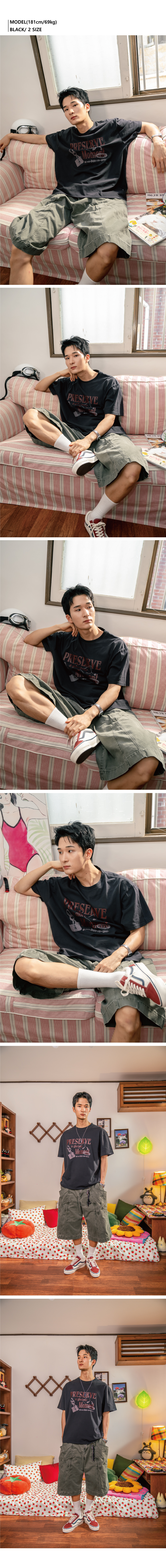 어드벤쳐 폰트 피그먼트 오버핏 반팔티셔츠 다크그레이 FST705