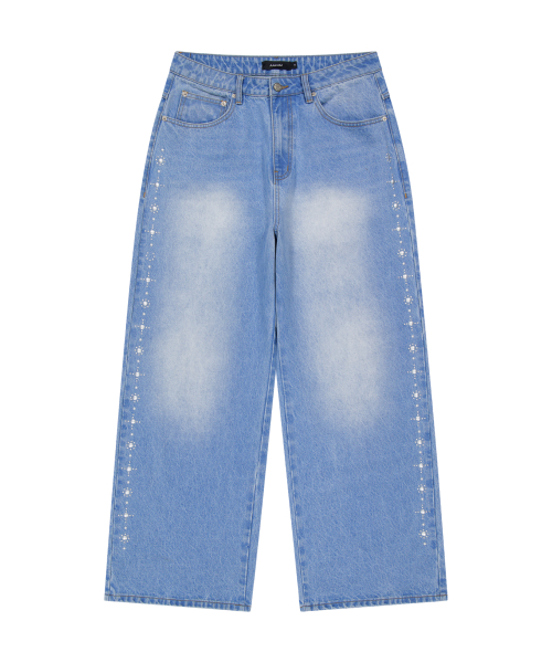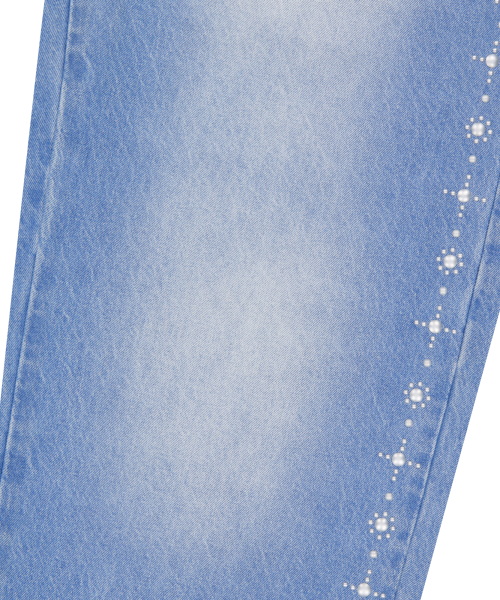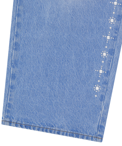 체크 아플리케 롤업 데님 팬츠 미디엄블루