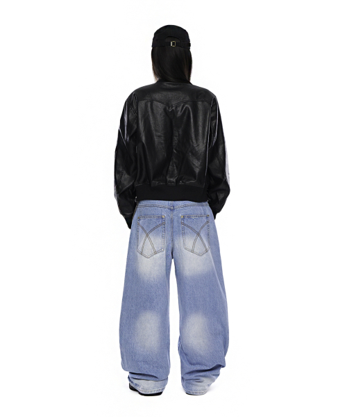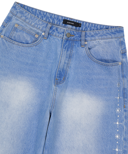 XP284 보로 패치워크 버뮤다 데님 팬츠 (BLUE)