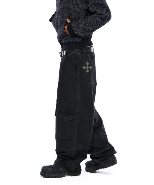 Painted Military Cargo Pants (Black)