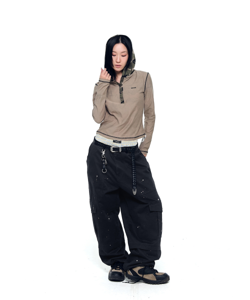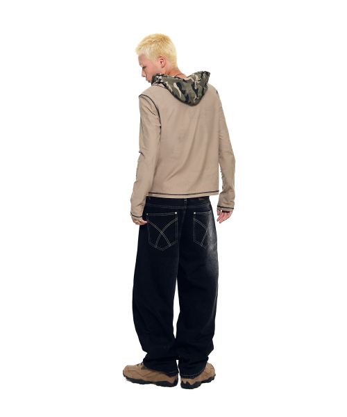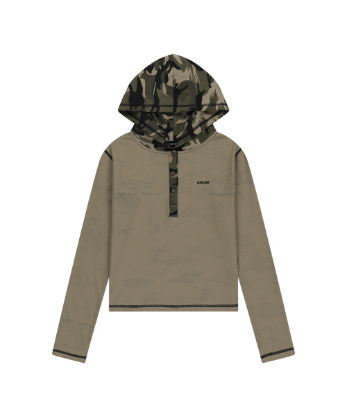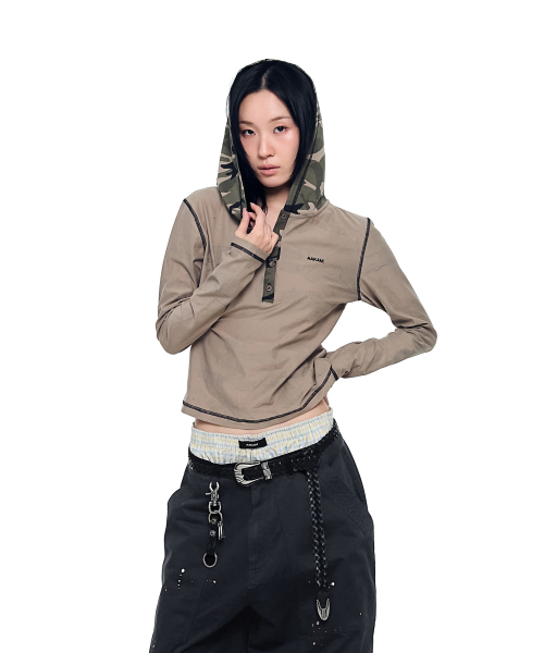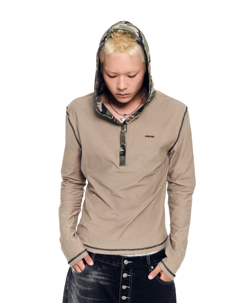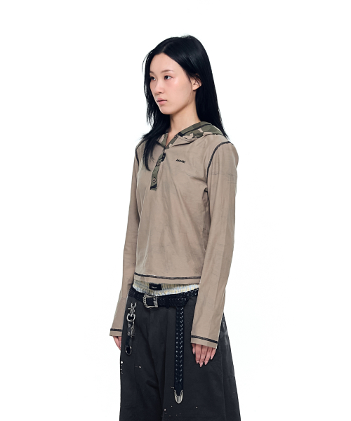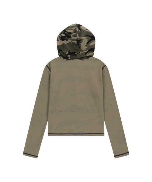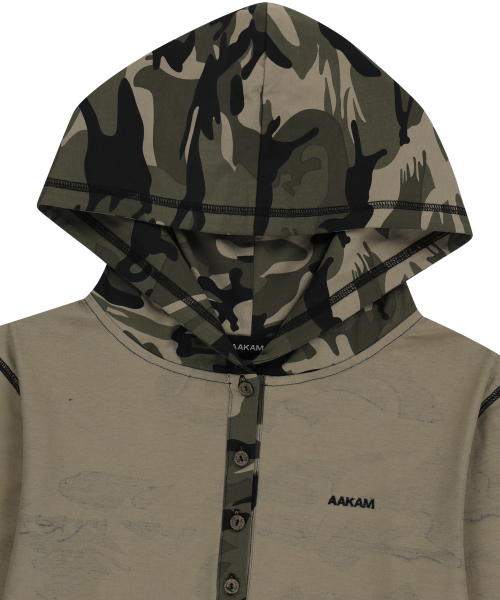 Camo Contrast Hooded Long Sleeve (Khaki)