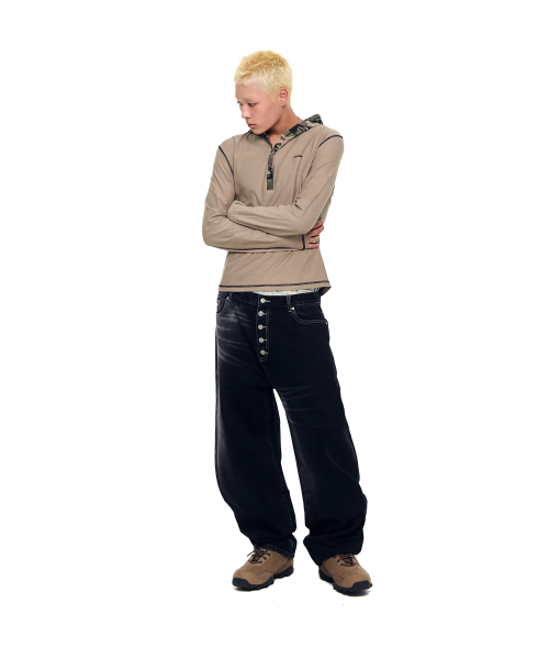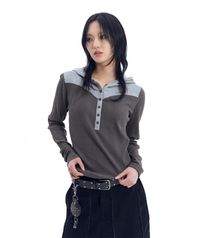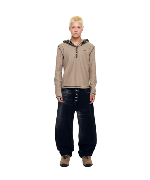 Ribbed Contrast Button Hoodie (Dark Gray)