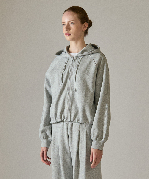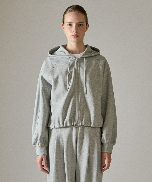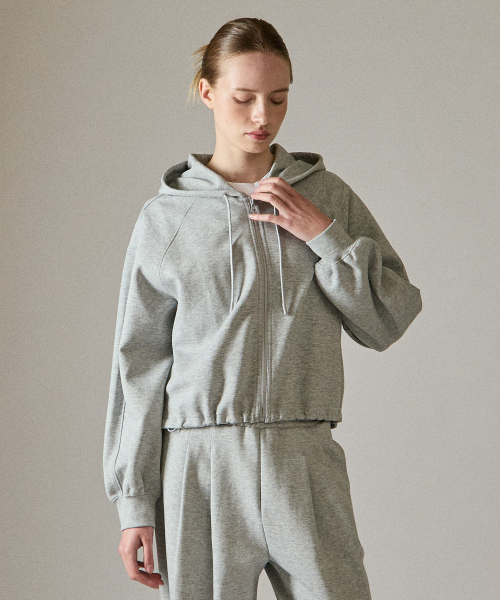여성 특양면 크롭 후드 스웨트집업 멜란지그레이 LZJP0211
