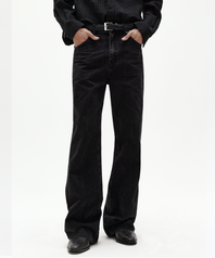 리버 플레어 데님 리브드 블랙