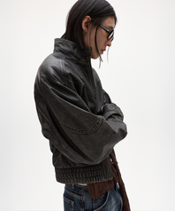 바론 카우 레더 보머 자켓 워시드 블랙