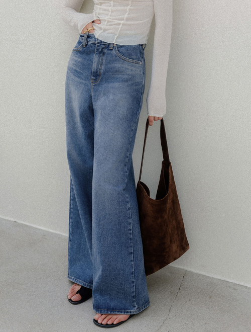 2.허벅지부터 밑단까지 자연스럽게 퍼지는 와이드 라인으로 다리 라인을 슬림하고 길어 보이게 연출해줍니다.