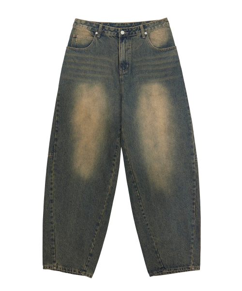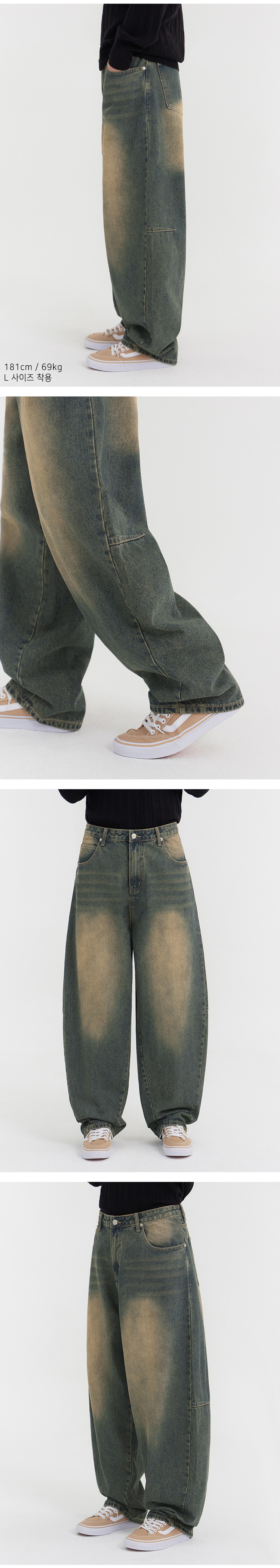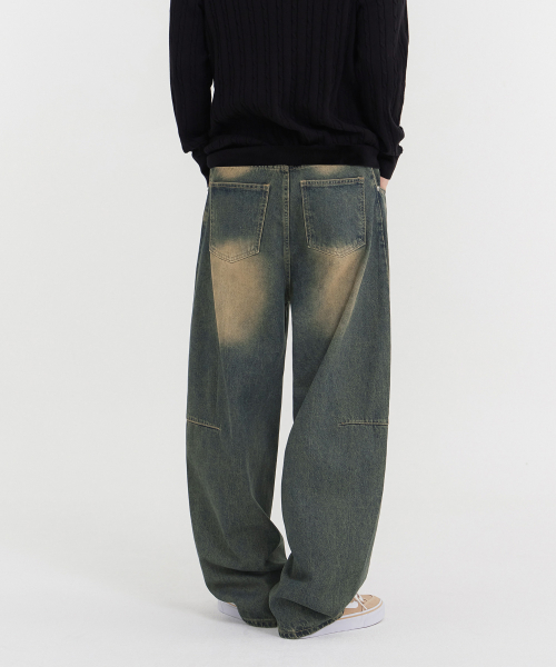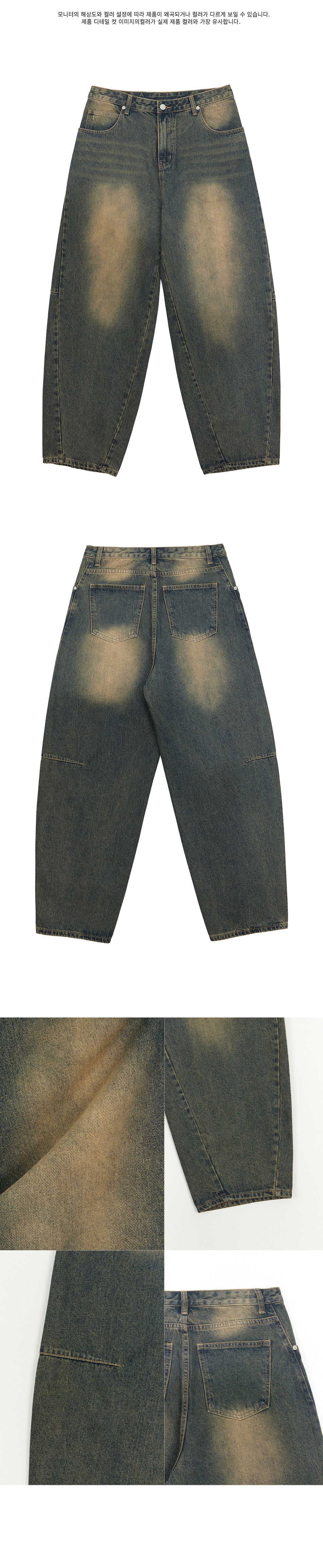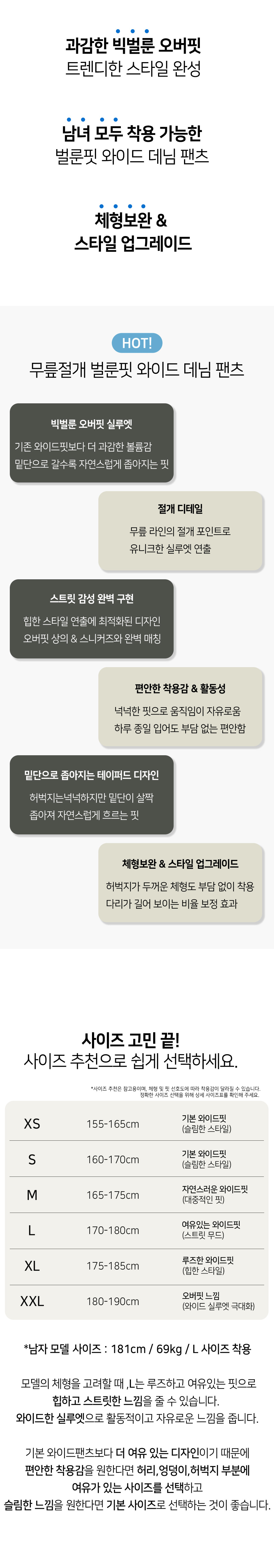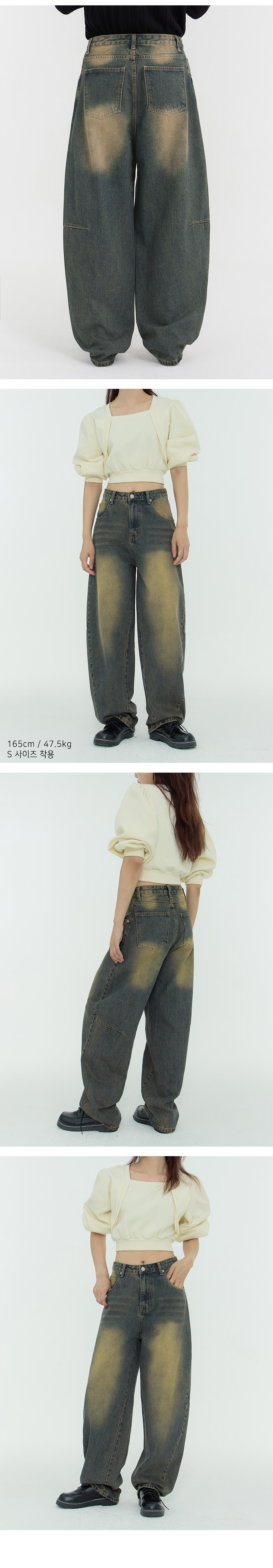무릎 절개컷 볼륨 벌룬핏 와이드 데님 팬츠 (구제틴)